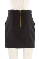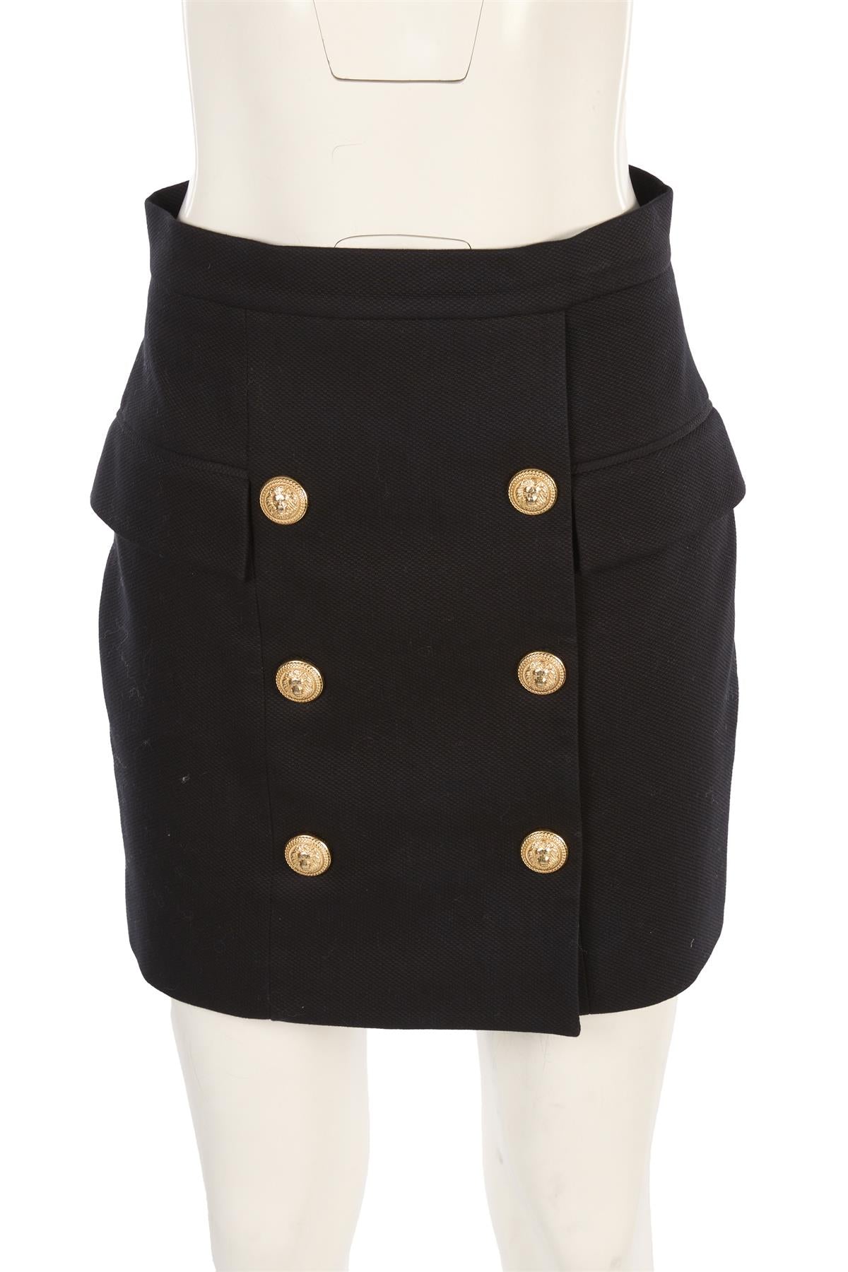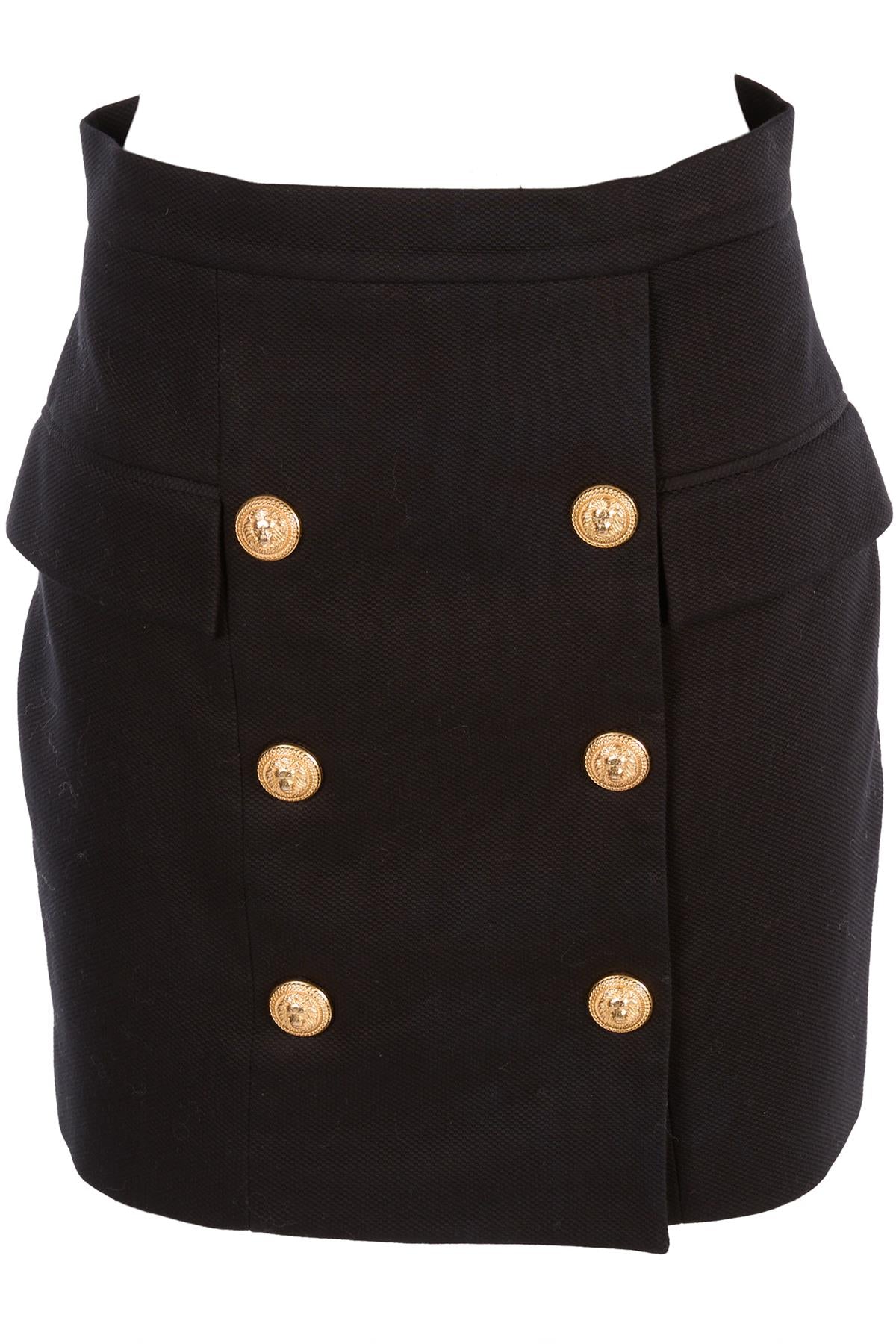 Balmain Black Cotton Mini Skirt. Black. 97% Cotton, 3% Elastane, 52% Viscose, 48% Cotton. FR 40 (UK 12, US 8, IT 44). Waist: 29 in. Hips: 37 in. Length: 18 in.