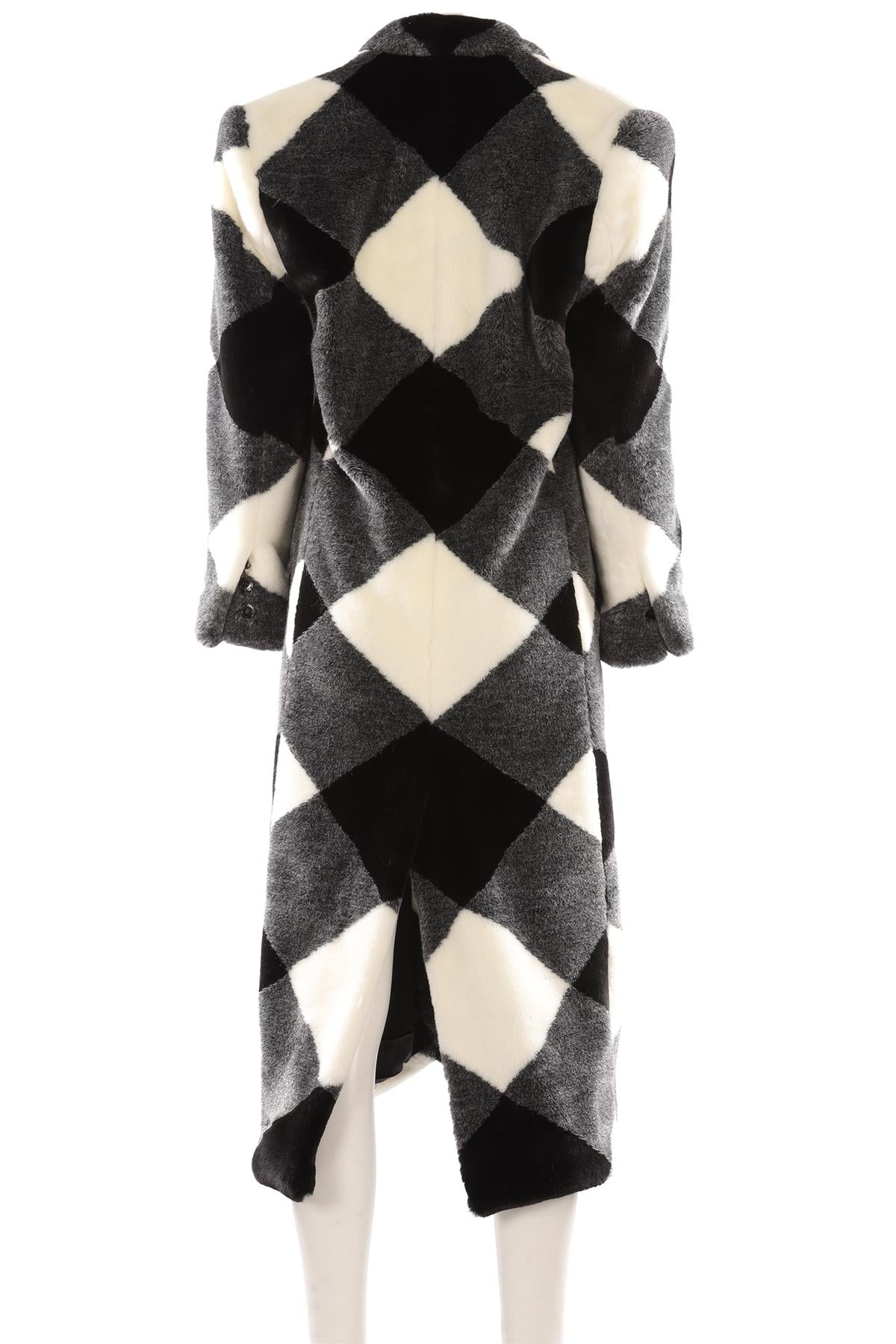 Balmain Black Faux Fur Coat. Black. Long Sleeve. V-Neck. Pull on. 90% Modacrylic, 10% Polyester. FR 36 (UK 8, US 4, IT 40). Shoulder to Shoulder: 19 in. Bust: 42 in. Waist: 40 in. Hips: 50 in. Length: 49 in.