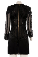 Balmain Black Velvet Mini Dress. Black. Long Sleeve. Crewneck. Zip fastening - Back. 100% Polyamide, 100% Cotton, 90% Acrylic, 10% Glass. FR 36 (UK 8, US 4, IT 40). Bust: 34 in. Waist: 26 in. Hips: 35 in. Length: 34 in.
