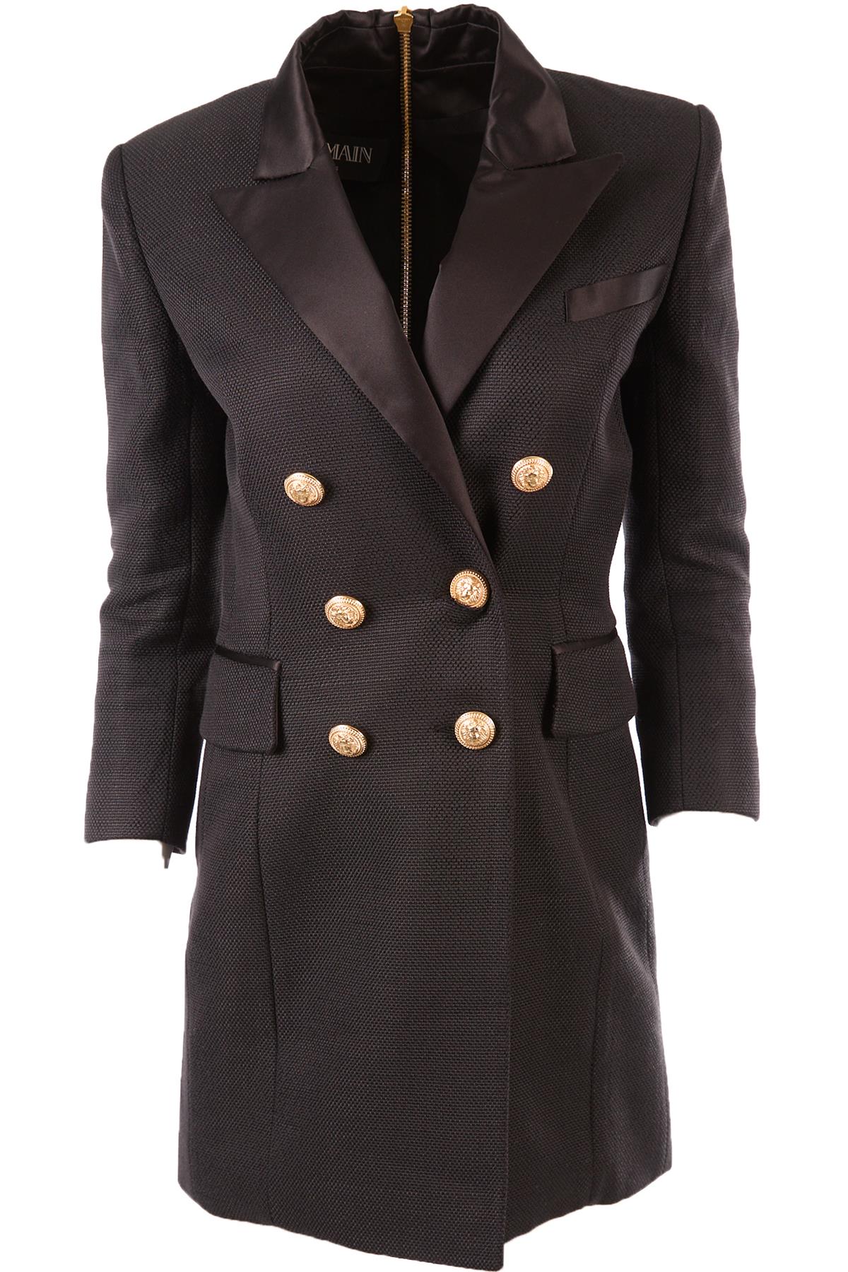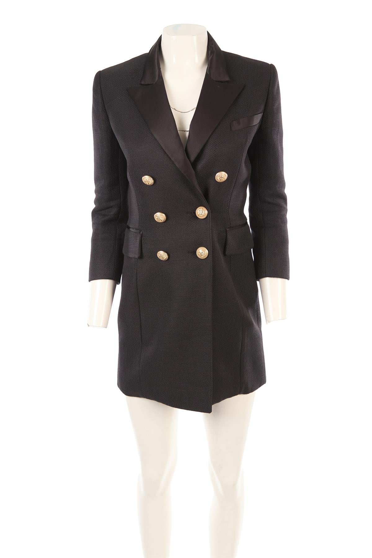 Balmain Black Woven Mini Dress. Black. Long Sleeve. V-Neck. Zip fastening - Back. 100% Viscose, 100% Silk, 52% Viscose, 48% Cotton. FR 40 (UK 12, US 8, IT 44). Bust: 38 in. Waist: 31 in. Hips: 38 in. Length: 35.5 in.