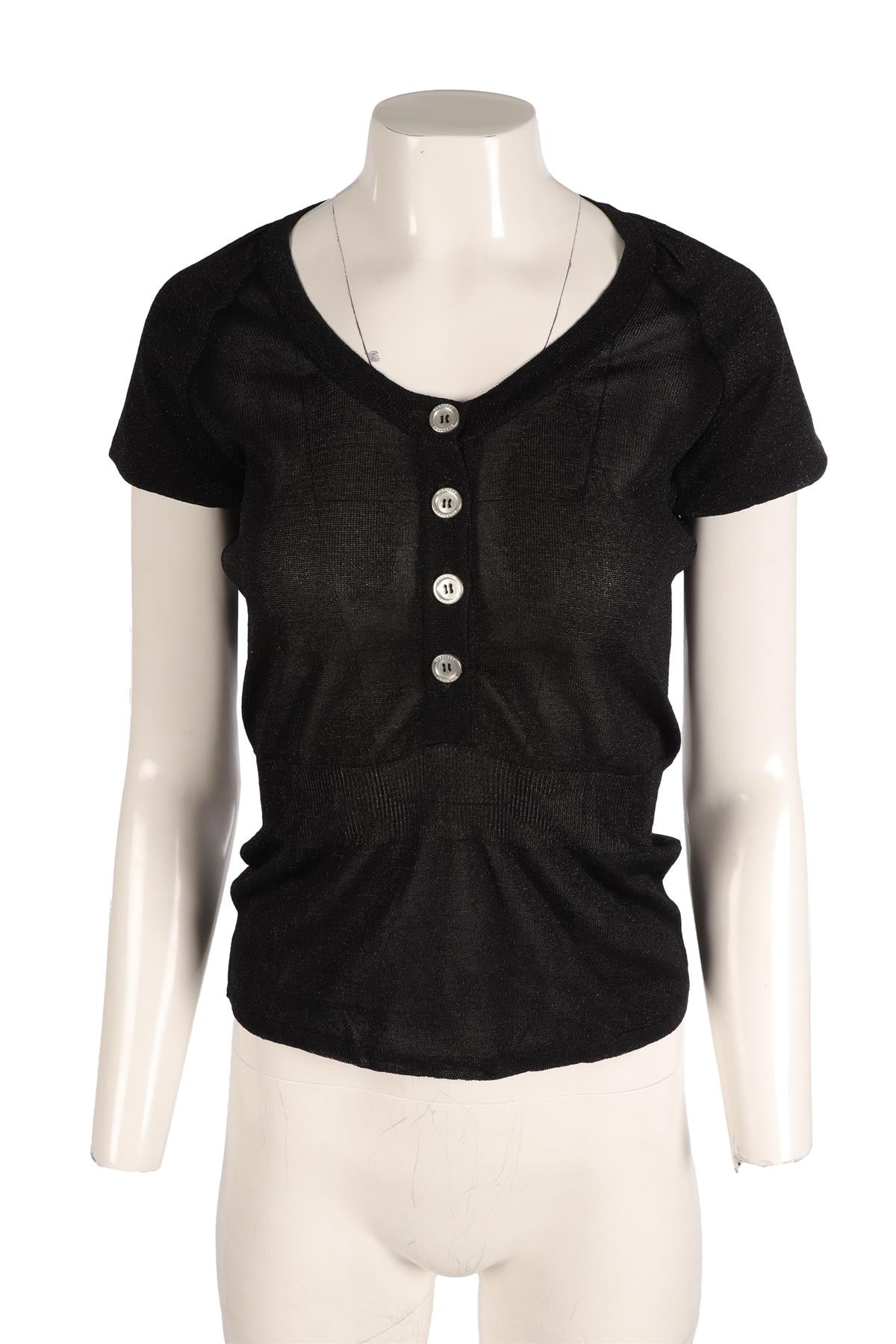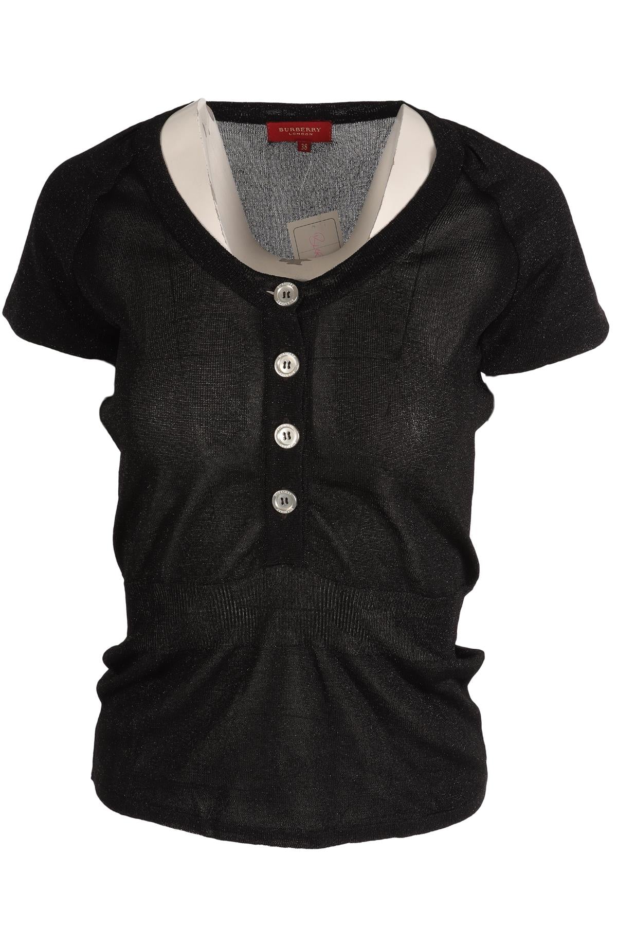 Burberry Black Knit Top. Black. Short Sleeve. Scoop Neck. Pull on. No composition label. IT 38 (UK 6, US 2, FR 34). Bust: 33 in. Waist: 24 in. Hips: 32 in. Length: 24 in.