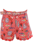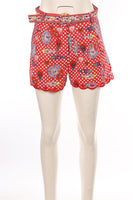 Camilla Red Cotton Shorts. Multicoloured. Button and Zip fastening - Front. 100% Cotton. Small (UK 8, US 4, FR 36, IT 40). Waist: 29 in. Hips: 36 in. Length: 15 in. Inseam: 3 in.