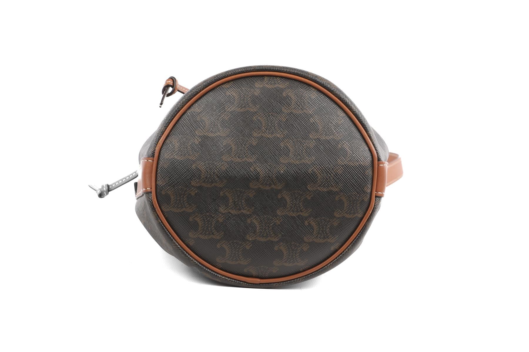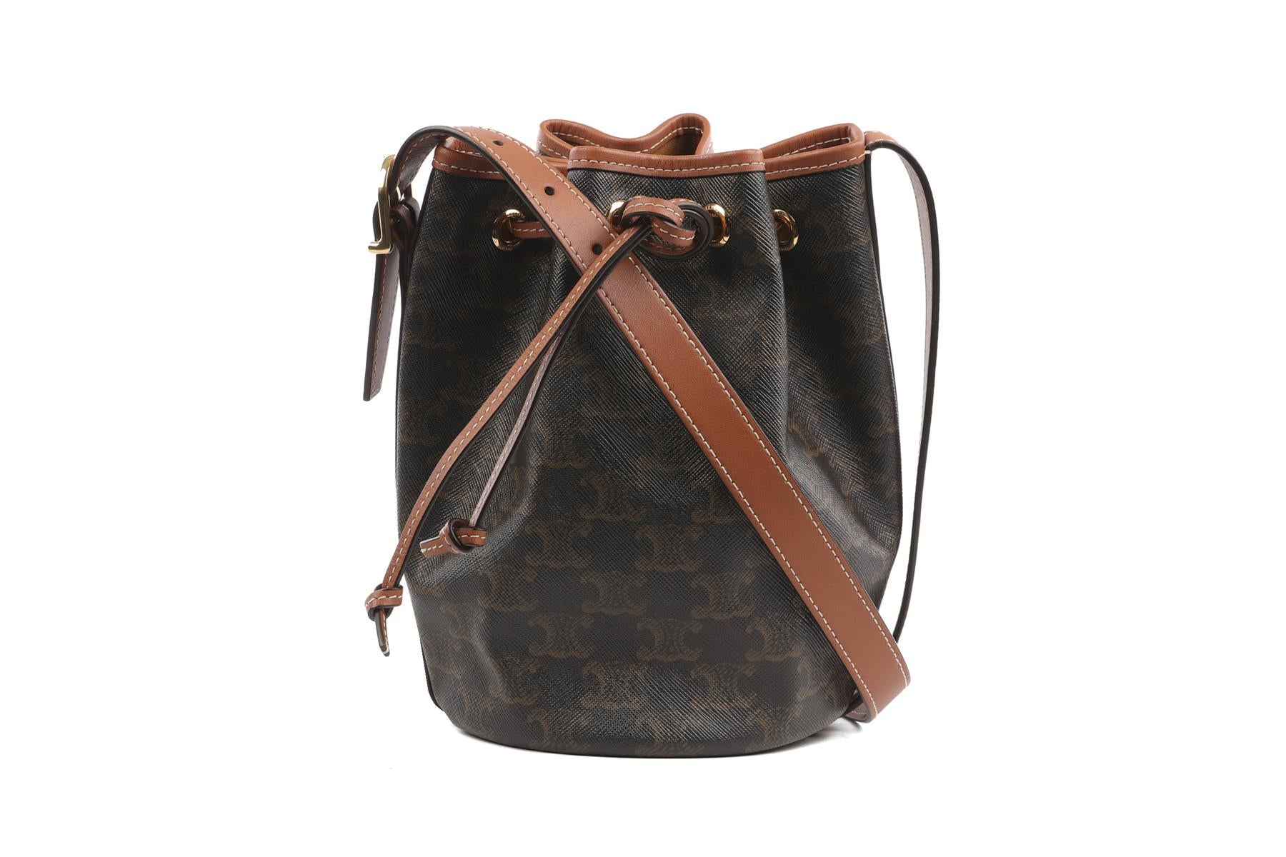Celine Brown Triomphe Small Leather Shoulder Bag. Black and brown. Tie fastening - Front. Height: 8.5 in. Width: 6.5 in. Depth: 5.75 in. Strap drop: 19.5 in.
