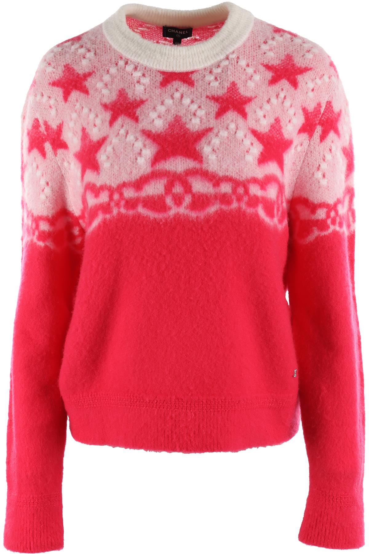 Chanel 2023 Pink Cashmere Jumper. Pink. Long Sleeve. Crewneck. Pull on. 72% Cashmere, 23% Silk, 3% Polyamide. FR 44 (UK 16, US 12, IT 48). Bust: 41 in. Waist: 38 in. Hips: 36 in. Length: 21 in.