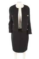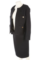 CHANEL BLACK 1991 WOOL SKIRT SUIT FR 46