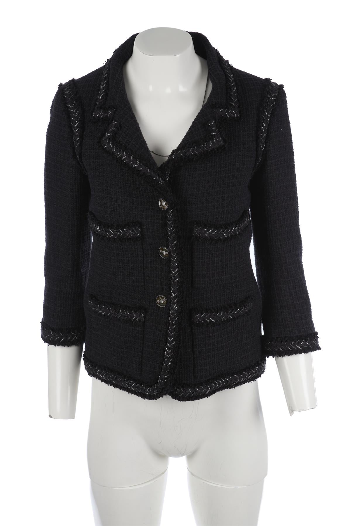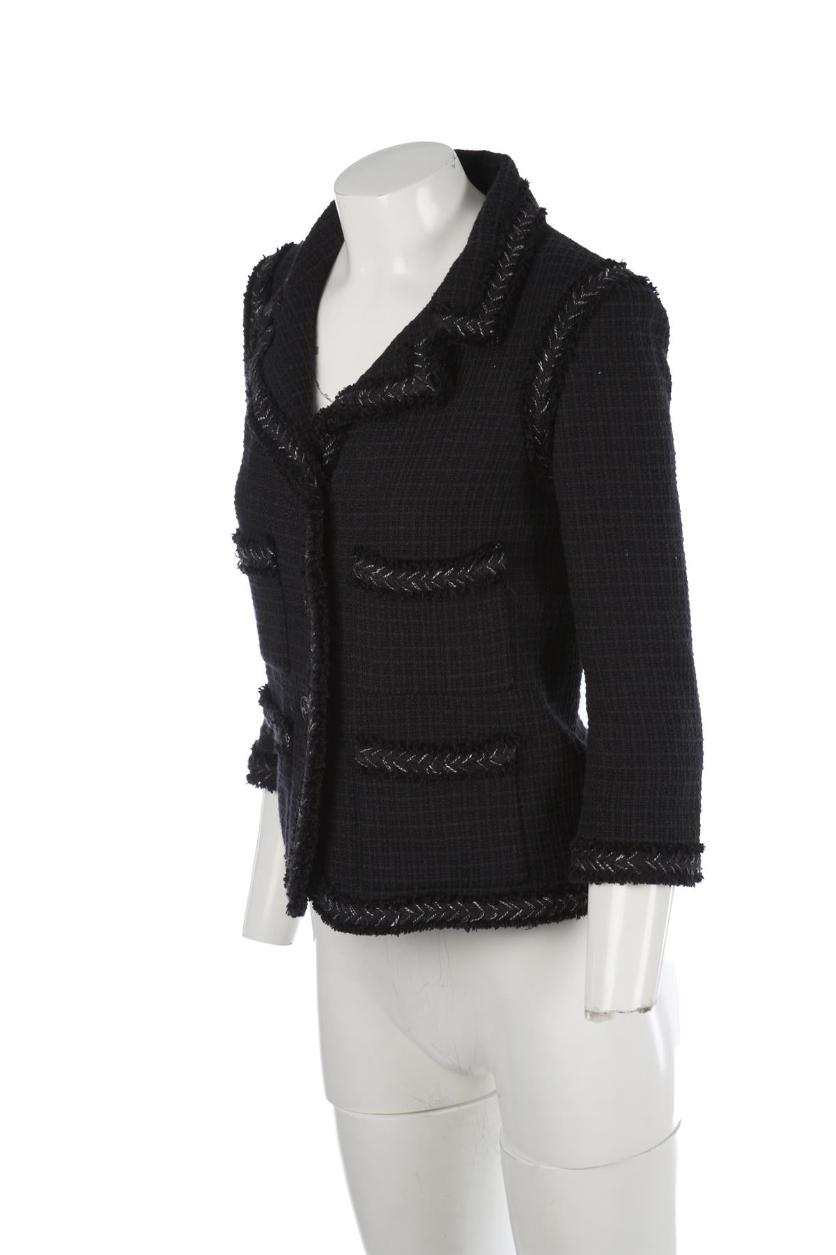 CHANEL BLACK 2008 COTTON BLAZER FR 36 UK 8
