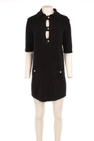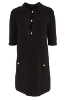 Chanel Black 2023 Cotton Mini Dress. Black. Short Sleeve. Crewneck. Button fastening - Front. 75% Cotton, 25% Polyamide. FR 36 (UK 8, US 4, IT 40). Bust: 38 in. Waist: 36 in. Hips: 36 in. Length: 31 in.