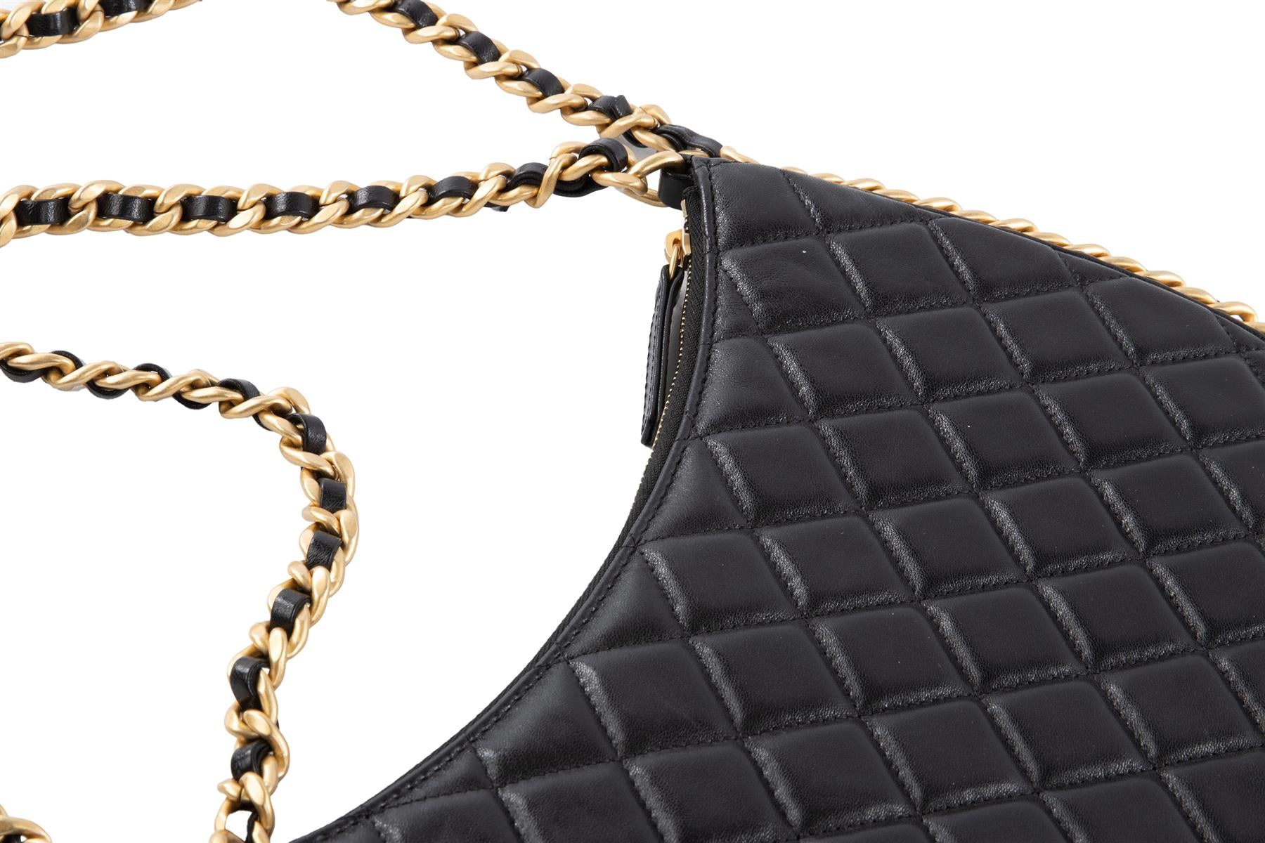 Chanel Black 2023 Hobo Large Quilted Leather Shoulder Bag. Black. Zip fastening - Top. Comes with - dustbag. One Size.. Height: 7 in. Width: 11 in. Depth: 0.7 in. Handle drop: 8 in. Strap drop: 19.5 in.