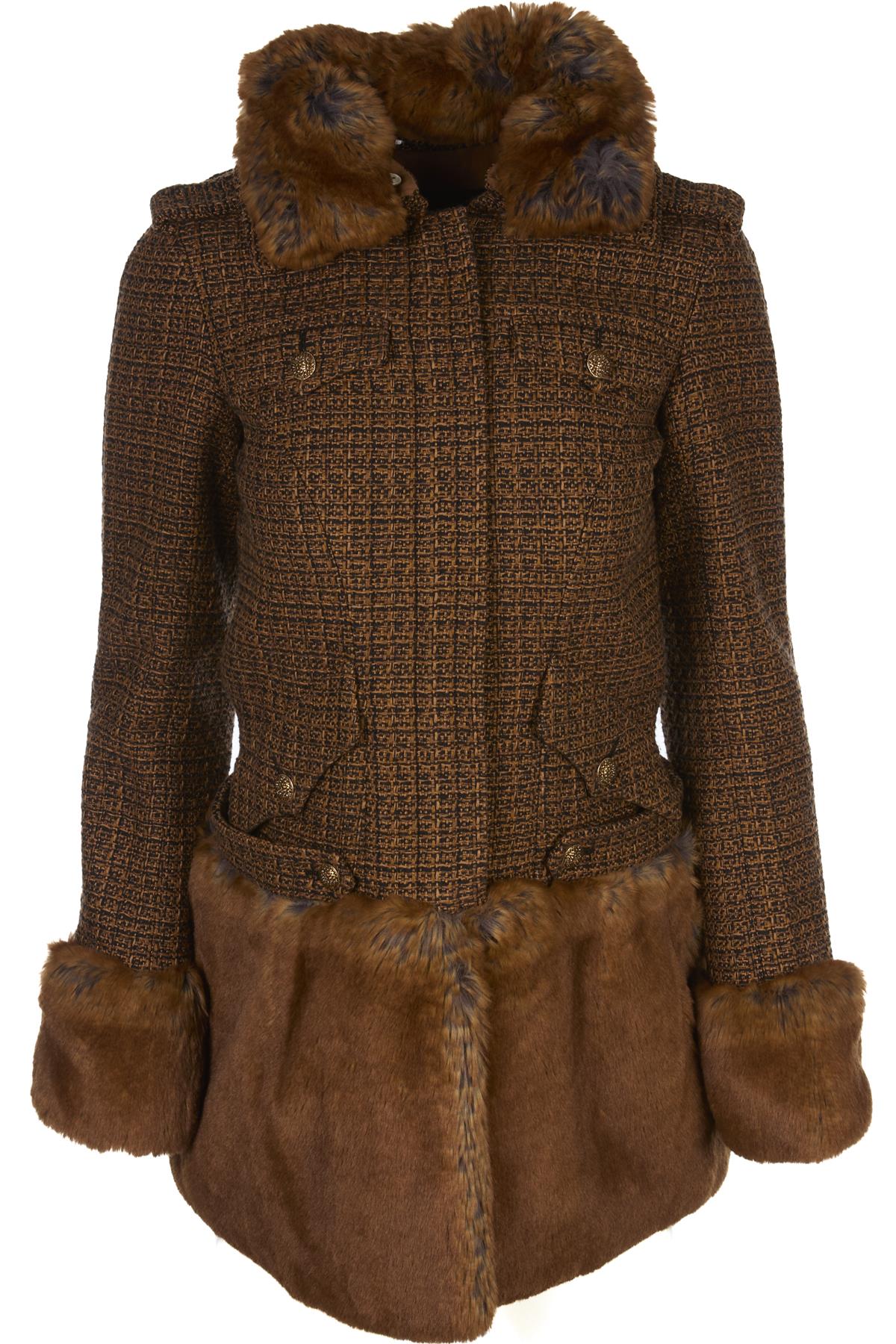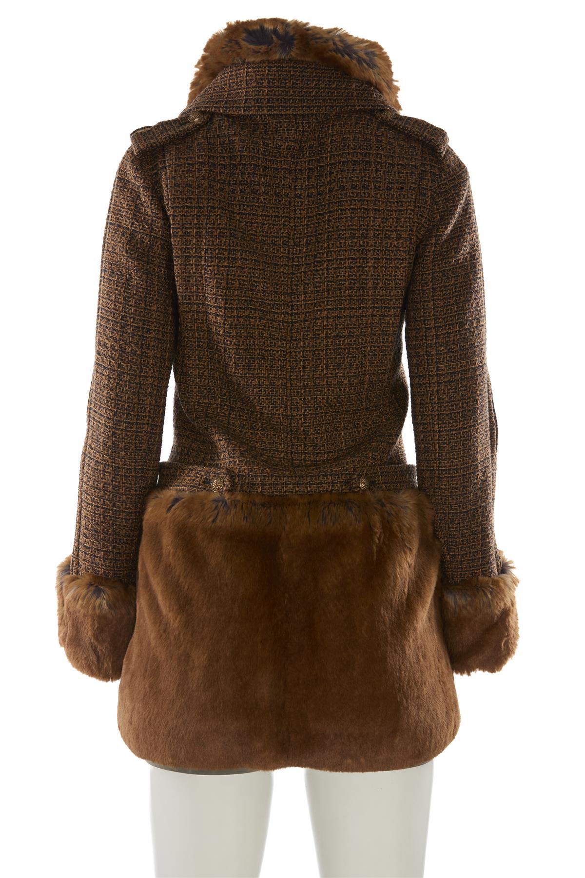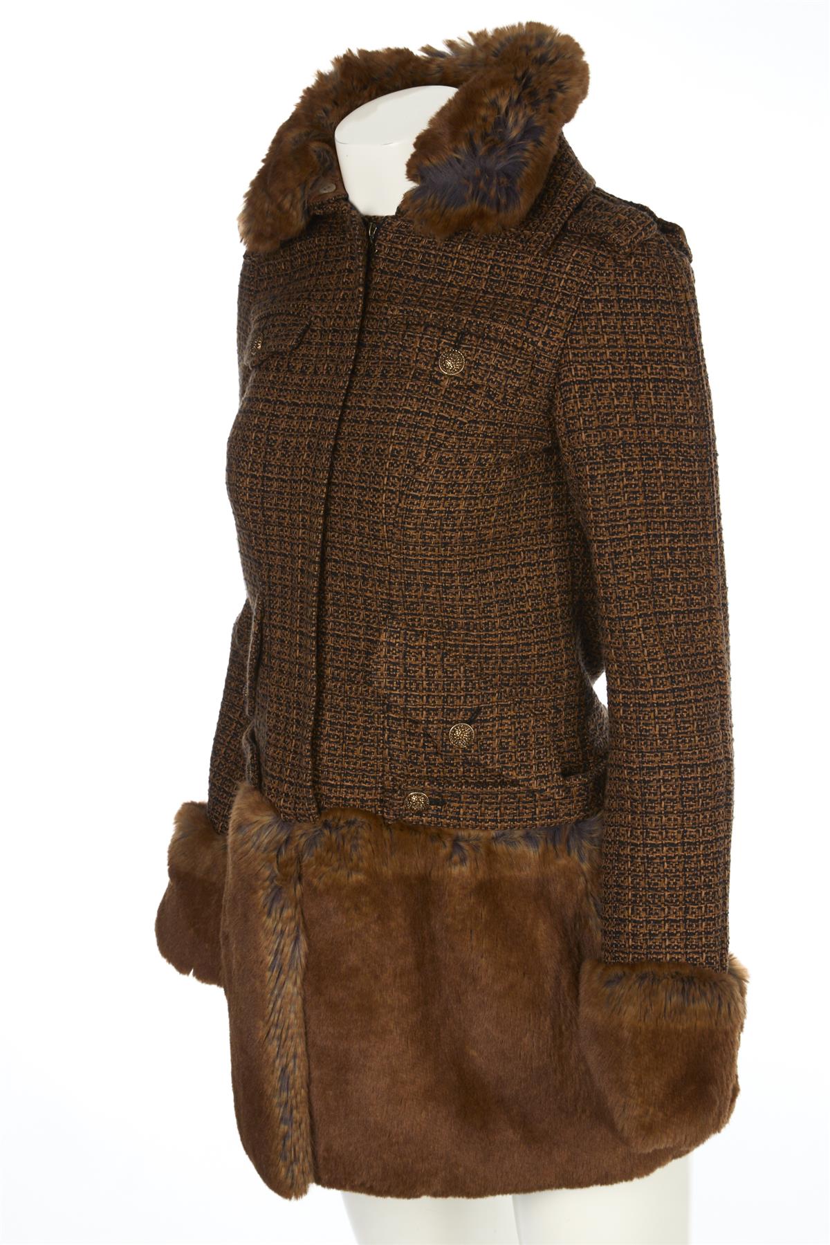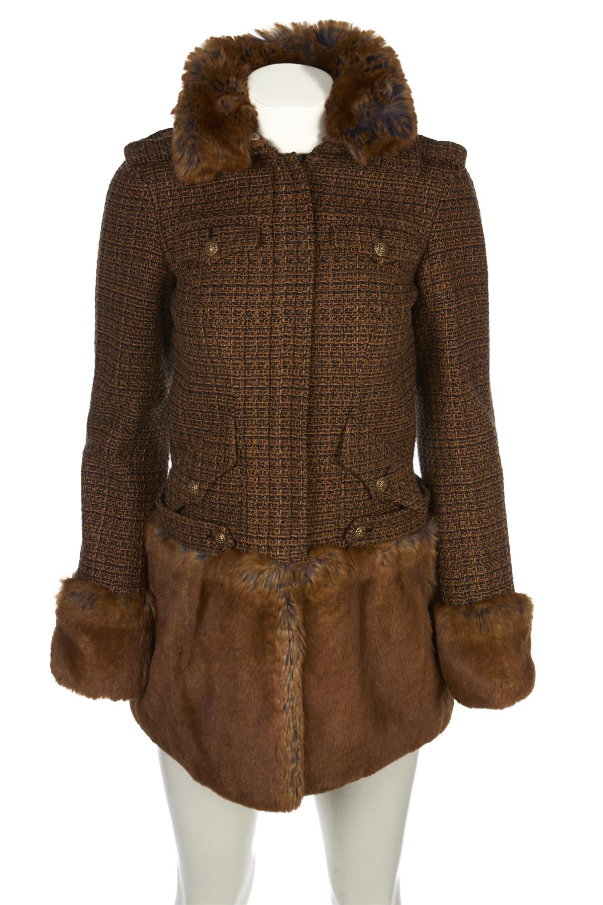 CHANEL BROWN 2010 FAUX FUR AND TWEED COAT FR 36 UK 8