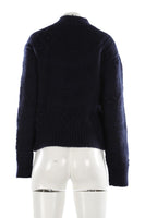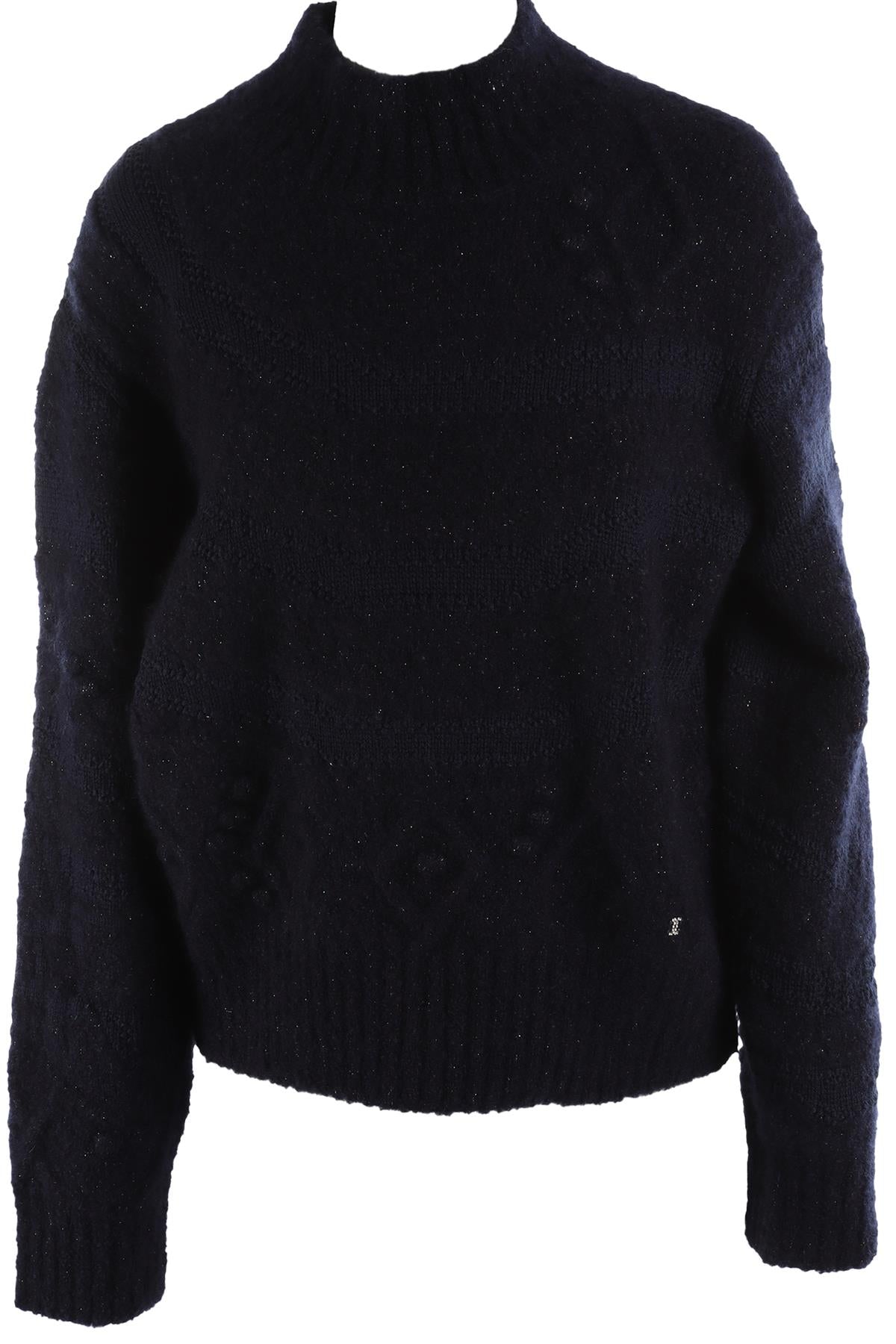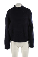 Chanel Navy 2023 Cashmere Jumper. Navy. Long Sleeve. Crewneck. Pull on. 59% Wool, 27% Cashmere, 11% Silk, 3% Polyester. FR 42 (UK 14, US 10, IT 46). Bust: 44 in. Waist: 40 in. Hips: 34 in. Length: 21 in.