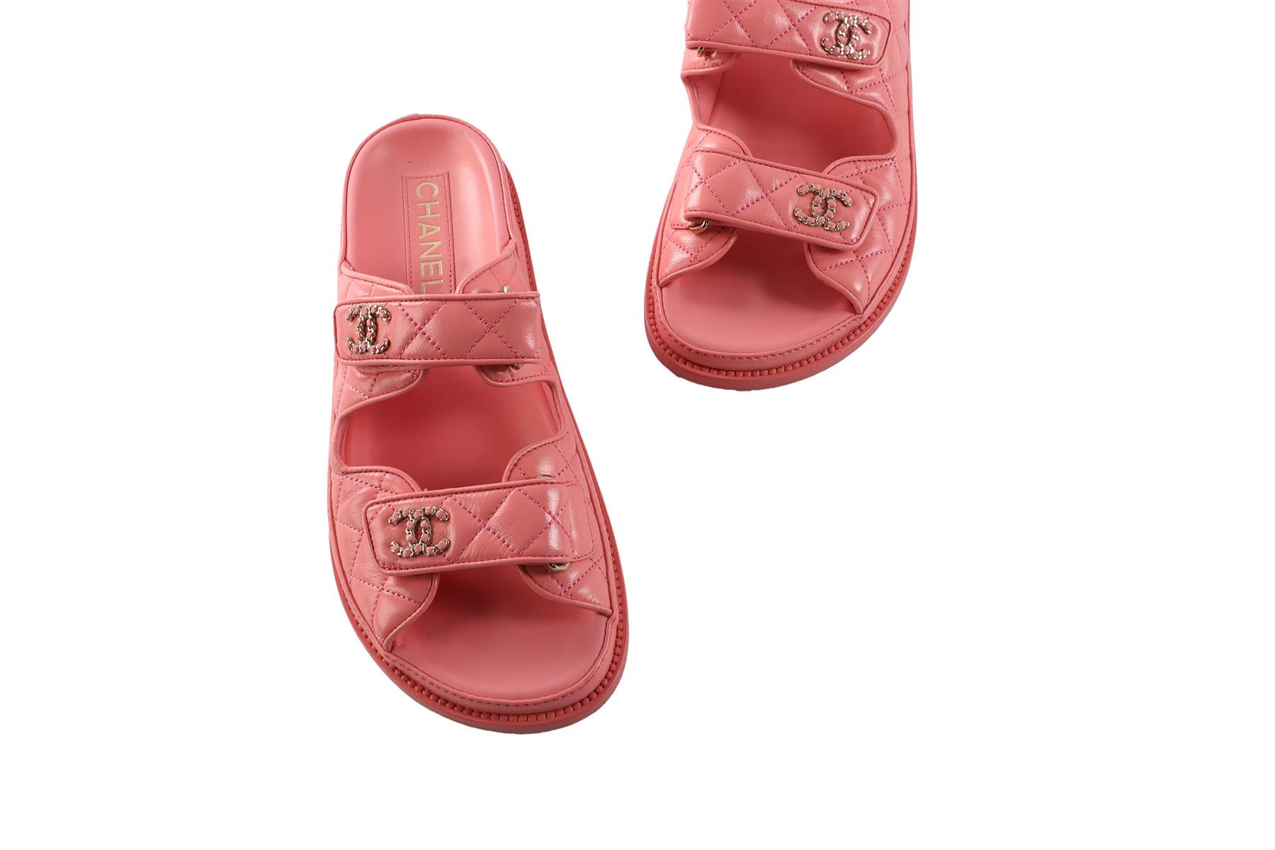 CHANEL PINK 2024 DAD QUILTED LEATHER SANDALS EU 38.5 UK 5.5 US 8.5