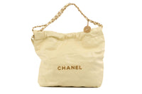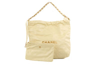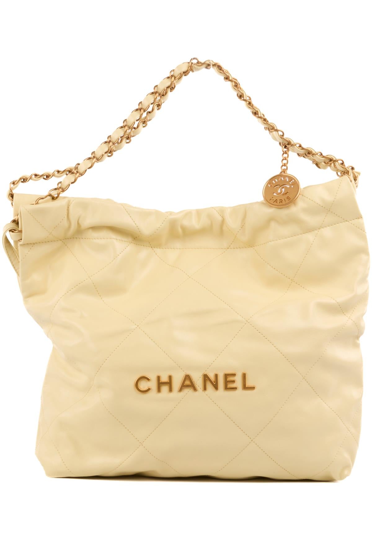 Chanel Yellow 2023 22 Small Quilted Leather Shoulder Bag. Yellow and gold. Magnetic fastening - Front. Comes with - purse. 22. Height: Bag: 13.5 in Purse: 5.5 in. Width: Bag: 14.75 in Purse: 8.75 in. Depth: Bag: 3 in Purse: 1 in. Handle drop: 5 in.