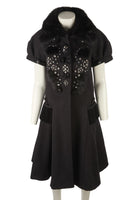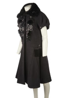 CHLOÉ BLACK 2008 FOX FUR AND WOOL COAT FR 36 UK 8