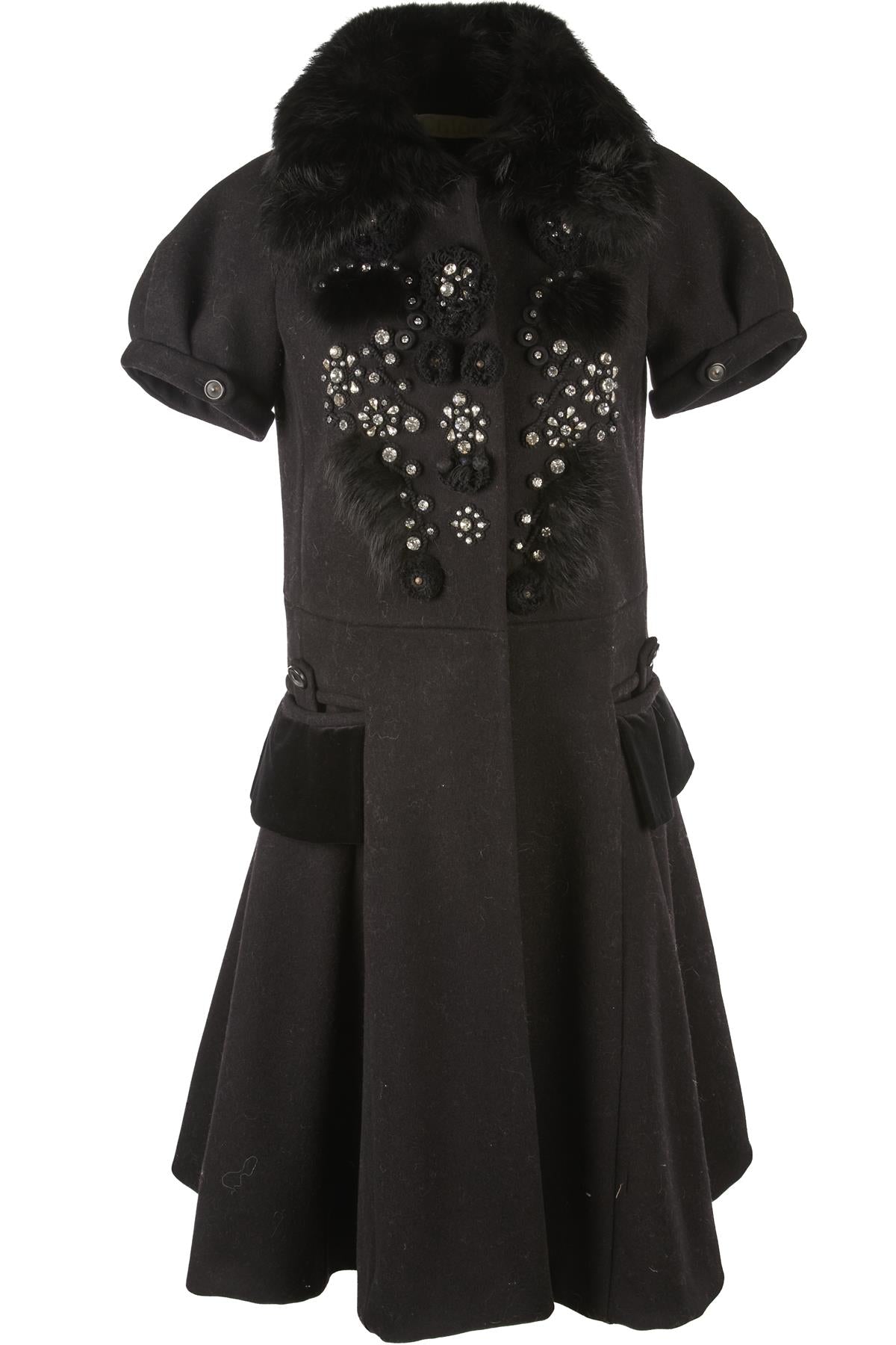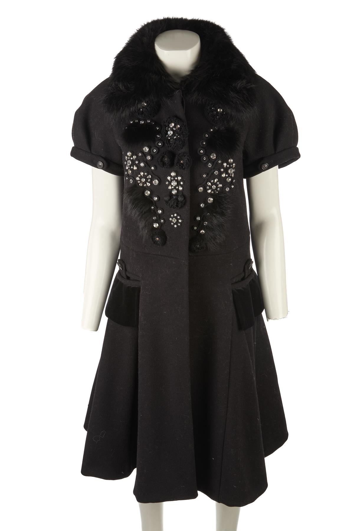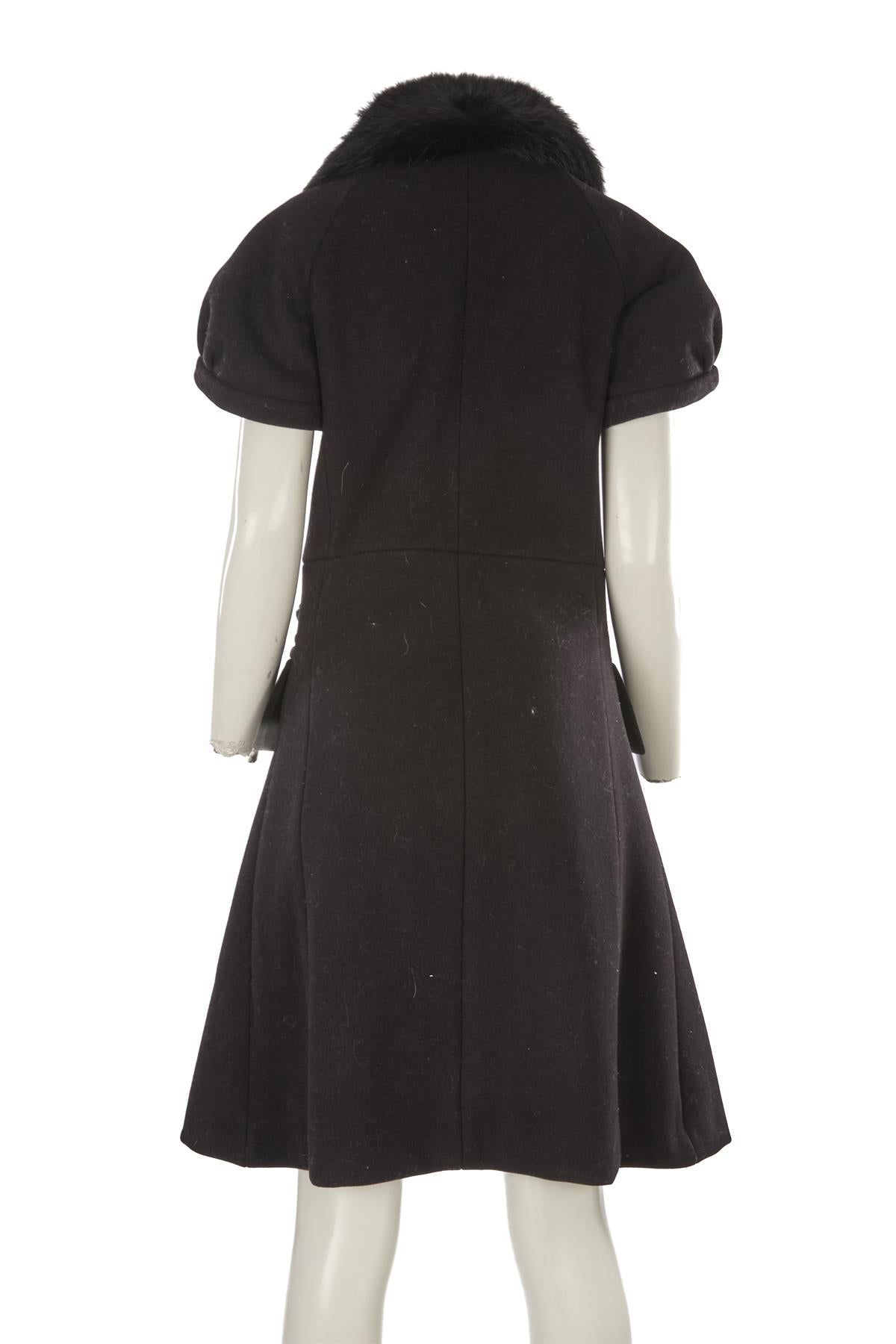 Chloé Black 2008 Fox Fur And Wool Coat. Black. Short Sleeve. Crewneck. Button fastening - Front. 100% Wool, 100% Fox fur. FR 36 (UK 8, FR 4, IT 40). Shoulder to Shoulder: 19 in. Bust: 35 in. Waist: 34 in. Hips: 42 in. Length: 40 in.