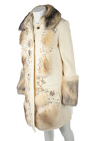 CHLOÉ CREAM 2008 FOX FUR AND WOOL COAT FR 36 UK 8