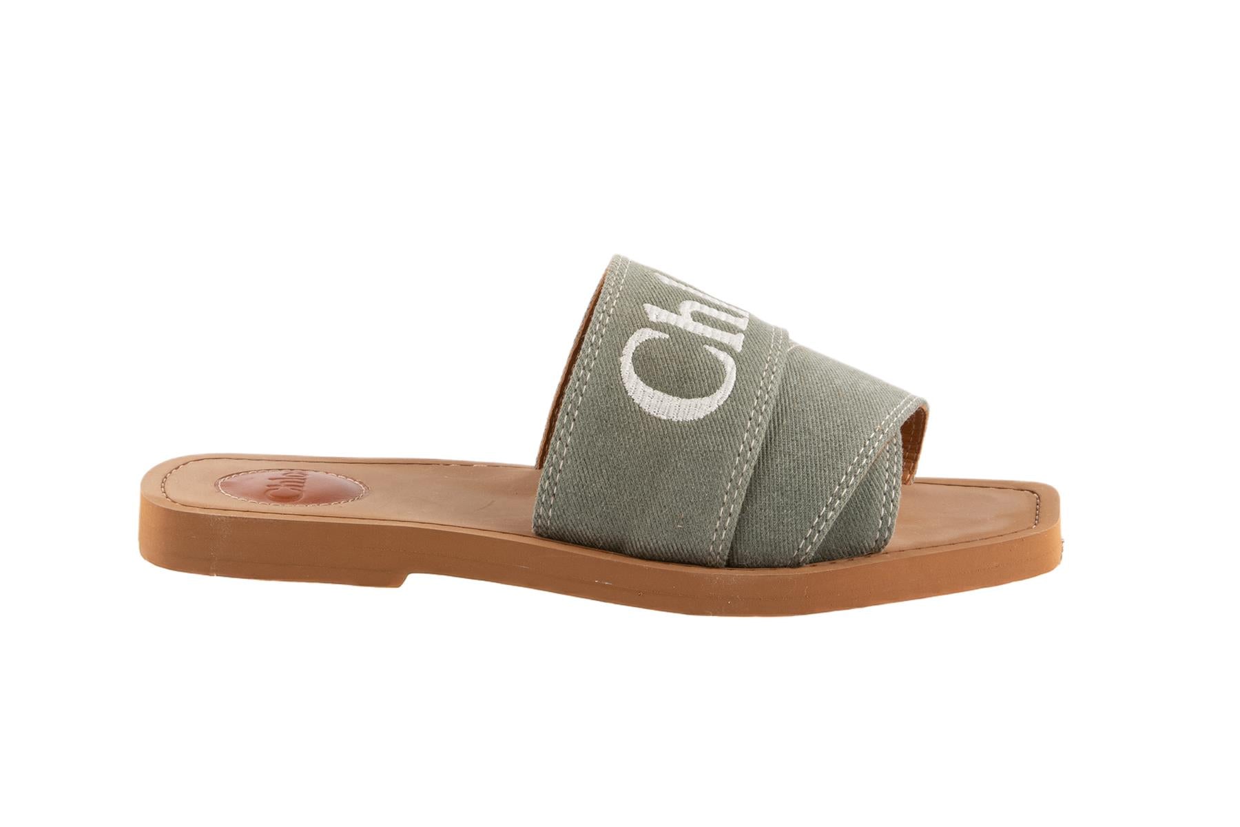 CHLOÉ GREEN WOODY CANVAS SANDALS EU 37