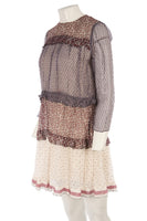 Chloé Multi Silk Mini Dress. Multicoloured. Long Sleeve. Crewneck. Zip fastening - Back. 100% Silk. FR 34 (UK 6, US 2, IT 38). Bust: 32 in. Waist: 30 in. Hips: 28 in. Length: 36 in.