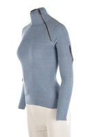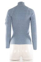 Christian Dior Blue Knit Sweater. Blue. Long Sleeve. Mock Neck. Pull on. 100% Cotton. FR 36 (UK 8, US 4, IT 38). Bust: 23 in. Waist: 19 in. Hips: 20 in. Length: 22 in.