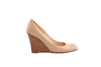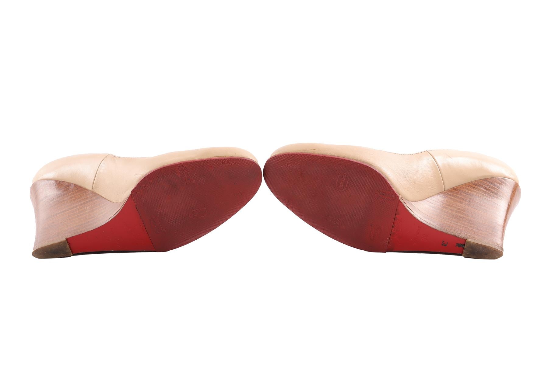 CHRISTIAN LOUBOUTIN BEIGE LEATHER WEDGE PUMPS EU 38