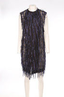 Dries Van Noten Black Silk Gilet. Black and Navy. Sleeveless. Crewneck. Hook and eye fastening - Front. 81% Polyamide, 13% Silk, 6% Polyester. FR 36 (UK 8, US 4, IT 40). Bust: 39 in. Waist: 39 in. Hips: 40 in. Length: 37 in.