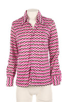 Emilio Pucci By Chesa Multi 1960-1970's Shirt. Multi. Long Sleeve. V-Neck. Button fastening - Front. No composition label. UK 12 (US 8, FR 40, IT 44). Bust: 40 in. Waist: 35 in. Hips: 41 in. Length: 26 in.