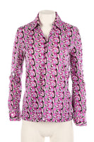 Emilio Pucci By Chesa Multi 1960-1970's Shirt. Multi. Long Sleeve. V-Neck. Button fastening - Front. No composition label. UK 8 (US 4, FR 36, IT 40). Bust: 36 in. Waist: 32 in. Hips: 40 in. Length: 26.5 in.
