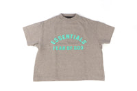 Essentials Fear Of God Grey Kids Boys Top. Grey and green. Short Sleeve. Crewneck. Pull on. 100% Cotton. 7-8 Years.