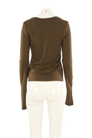 Eterne Green Cotton Top. Green. Long Sleeve. Crewneck. Pull on. 50% Cotton, 50% Modal. Large (UK 12, US 8, FR 40, IT 44). Bust: 33 in. Waist: 30 in. Hips: 30 in. Length: 24 in.