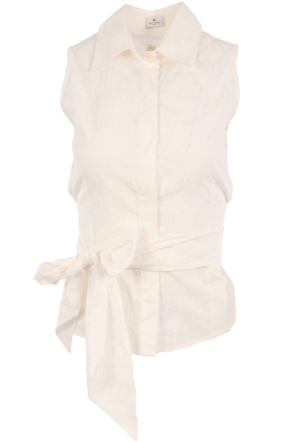 Etro White Cotton Shirt. White. Sleeveless. Crewneck. Button fastening - Front. 100% Cotton. IT 42 (UK 10, US 6, FR 38). Bust: 36 in. Waist: 34 in. Hips: 37 in. Length: 24 in.