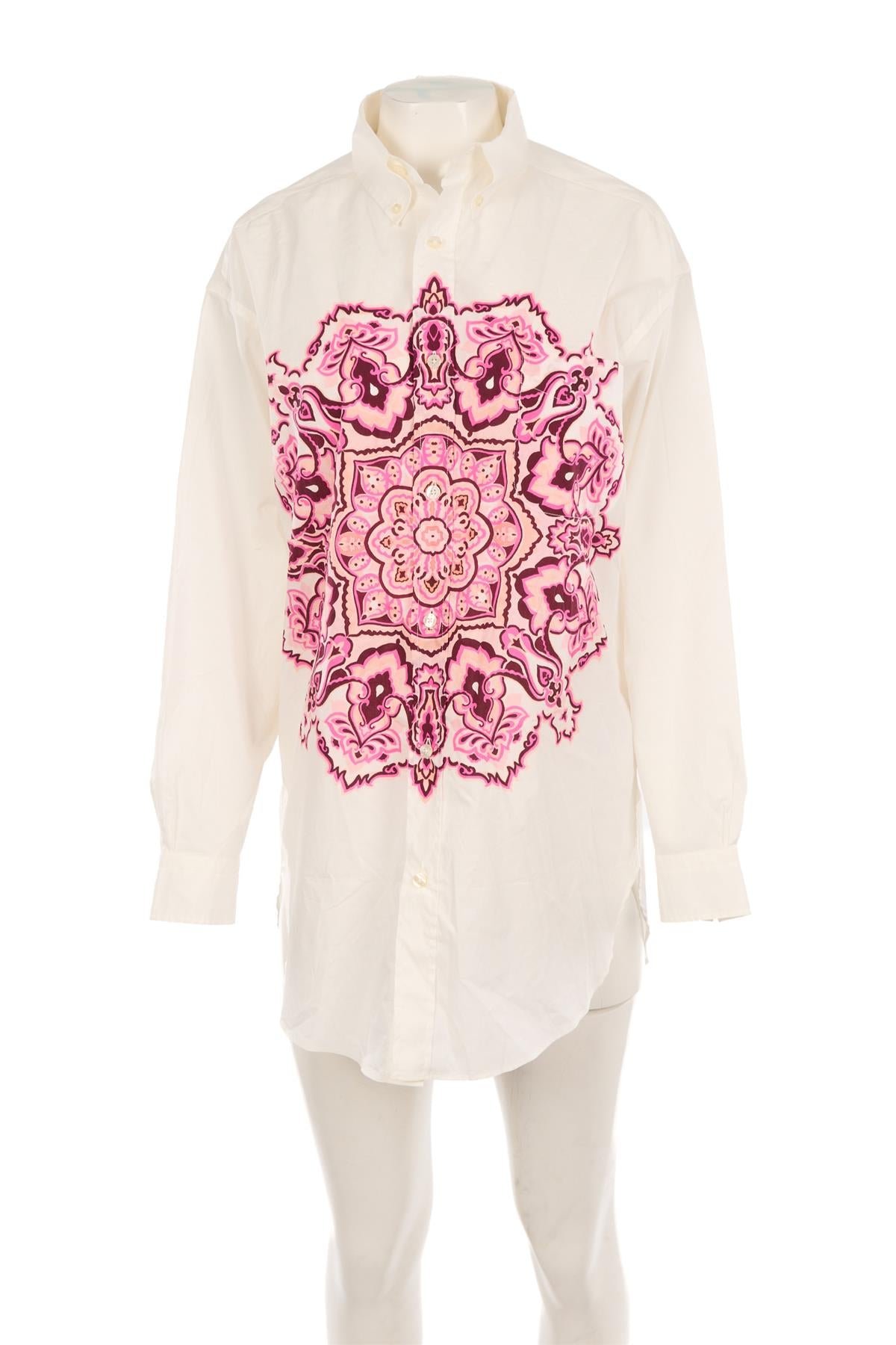 Etro White Cotton Shirt. White. Long Sleeve. Crewneck. Button fastening - Front. 97% Cotton, 3% Elastane. Small (UK 8, US 4, FR 36, IT 40). Bust: 46 in. Waist: 42 in. Hips: 43 in. Length: 34 in.