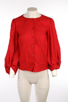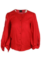 Fendi Red Wool Top. Red. Long Sleeve. Crewneck. Button fastening - Front. 70% Wool, 30% Silk. IT 38 (UK 6, US 2, FR 34). Bust: 36 in. Waist: 33 in. Hips: 36 in. Length: 23 in.
