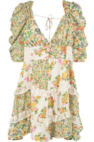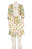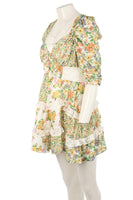 For Love & Lemons Multi Satin Mini Dress. Multicoloured. Short Sleeve. V-Neck. Zip fastening - Back. 100% Recycled Polyester, 54.3% Cotton, 45.7% Nylon, 98% Recycled Polyester, 2% Spandex. XLarge (UK 14, US 10, FR 42, IT 46). Bust: 32 in. Waist: 30 in. Hips: 42 in. Length: 32 in.