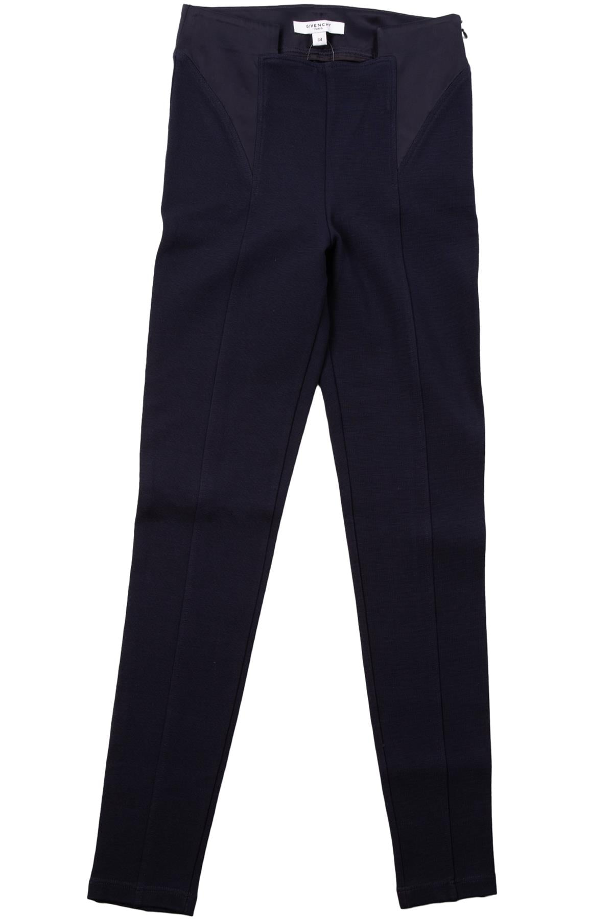 Givenchy Navy Wool Leggings. Navy. Pull on. 85% Viscose, 11% Polyamide, 4% Elastane. FR 34 (UK 6, FR 34, IT 38). Waist: 24 in. Hips: 27 in. Length: 34 in. Inseam: 27 in. Rise: 8.5 in.
