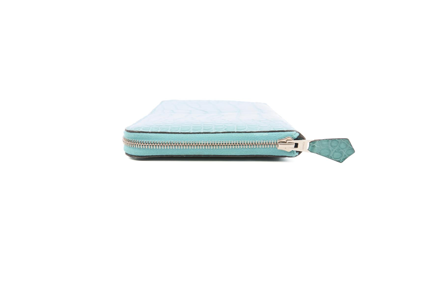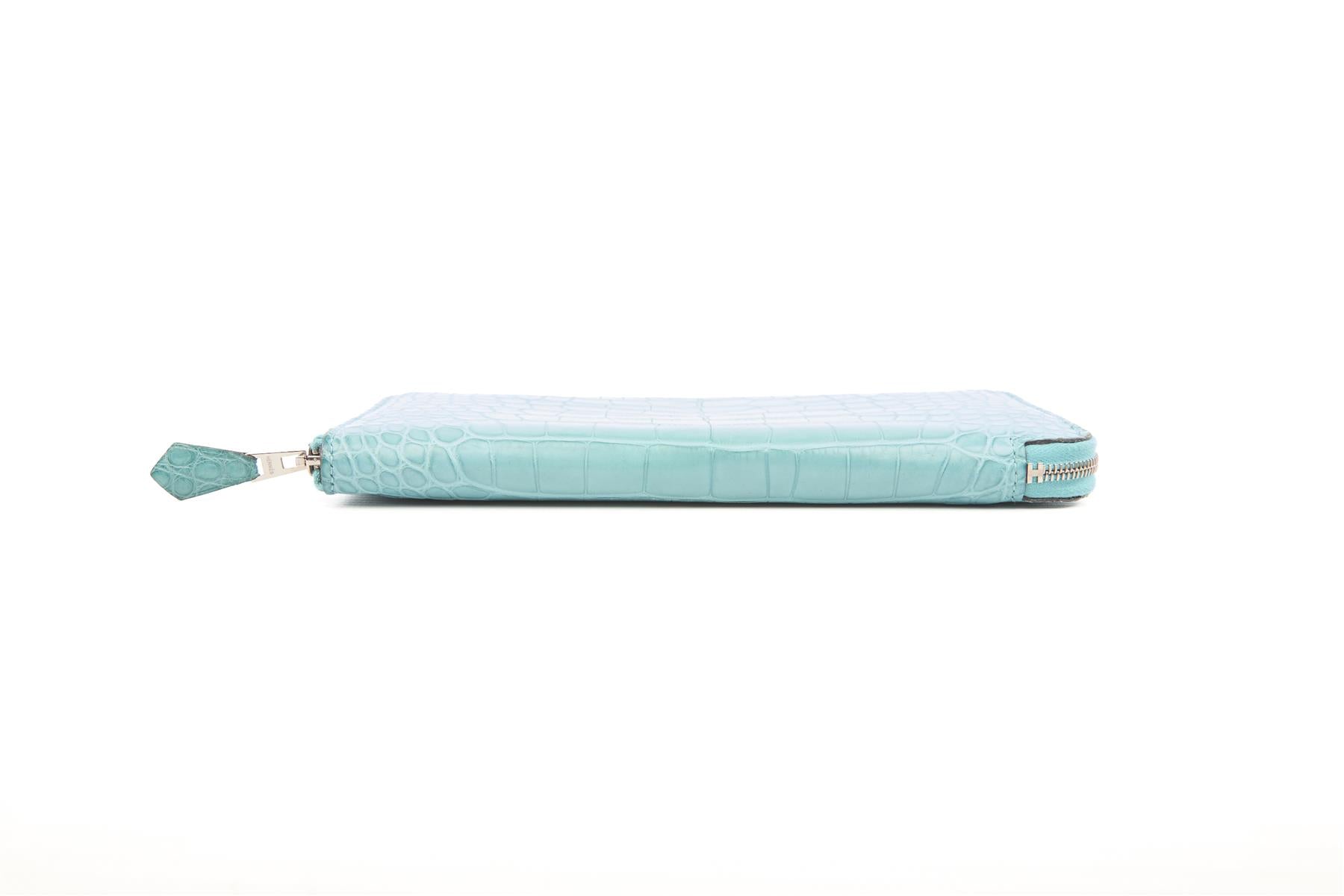 Hermès Blue 2015 Azap Classic Matte Alligator Mississippiensis Wallet. Blue. Zip fastening - Side. Does not come with - dustbag or box. Height: 4.2 in. Width: 7.8 in. Depth: 0.5 in.