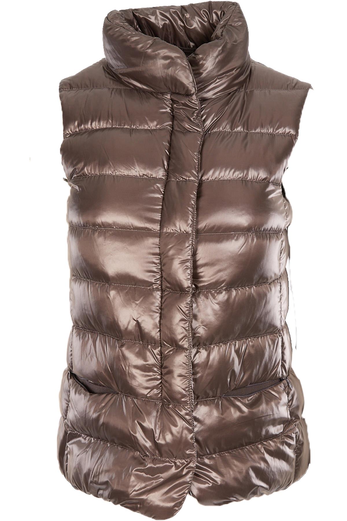 Herno Grey Padded Down Gilet. Grey. Sleeveless. Mock Neck. Zip fastening - Front. 100% Polyamide. Medium (UK 10, US 6, FR 38, IT 42). Shoulder to Shoulder: 14 in. Bust: 34 in. Waist: 34 in. Hips: 40 in. Length: 22.5 in.