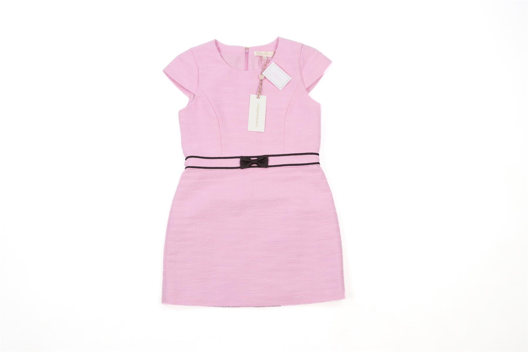 Loveshackfancy Pink Teen Girls Dress. Pink and black. Short Sleeve. Crewneck. Zip fastening - Back. 100% Cotton, 55% Polyester, 45% Viscose. 14 Years.