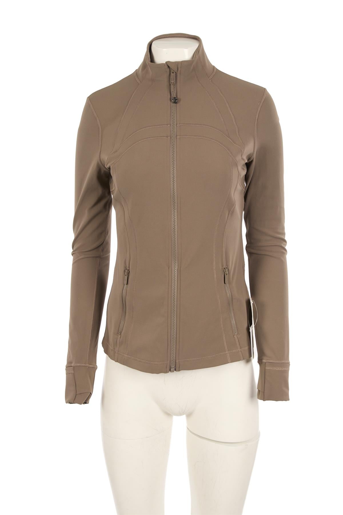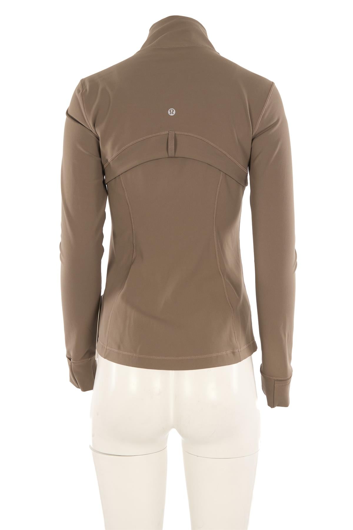 Lululemon Green Jersey Jacket. Green. Long Sleeve. Crewneck. Zip fastening - Front. 81% Nylon, 19% Elastane, 89% Polyester, 11% Elastane. UK 12 (US 8, FR 40, IT 44). Bust: 31 in. Waist: 27 in. Hips: 28 in. Length: 24 in.