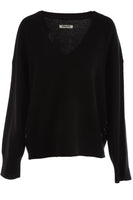 Max & Moi Black Wool Sweater. Black. Long Sleeve. V-Neck. Pull on. 70% Wool, 30% Cashmere. Medium (UK 10, US 6, FR 38, IT 42). Bust: 48 in. Waist: 46 in. Hips: 44 in. Length: 25 in.