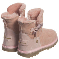 - Pale pink faux fur lined boots by Miss Blumarine made from a soft suede leather.