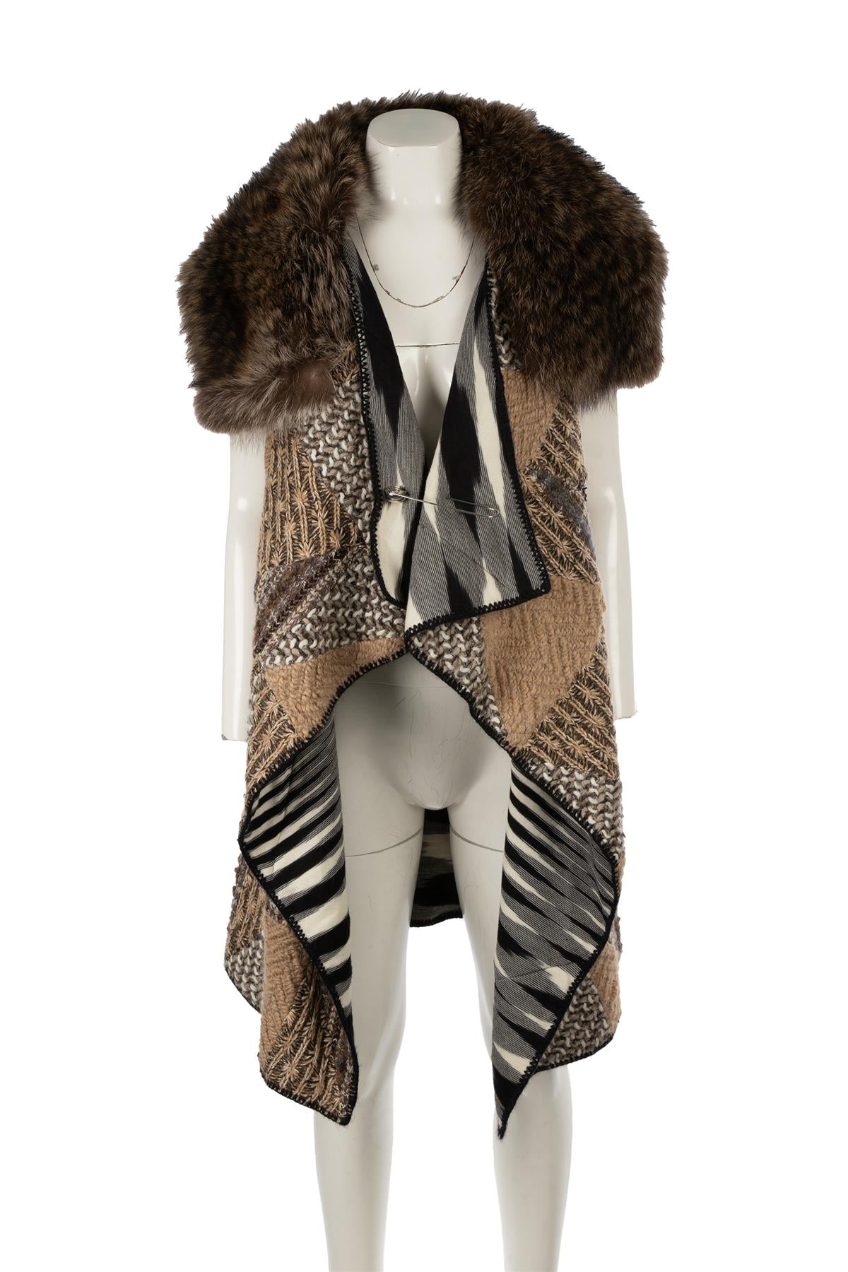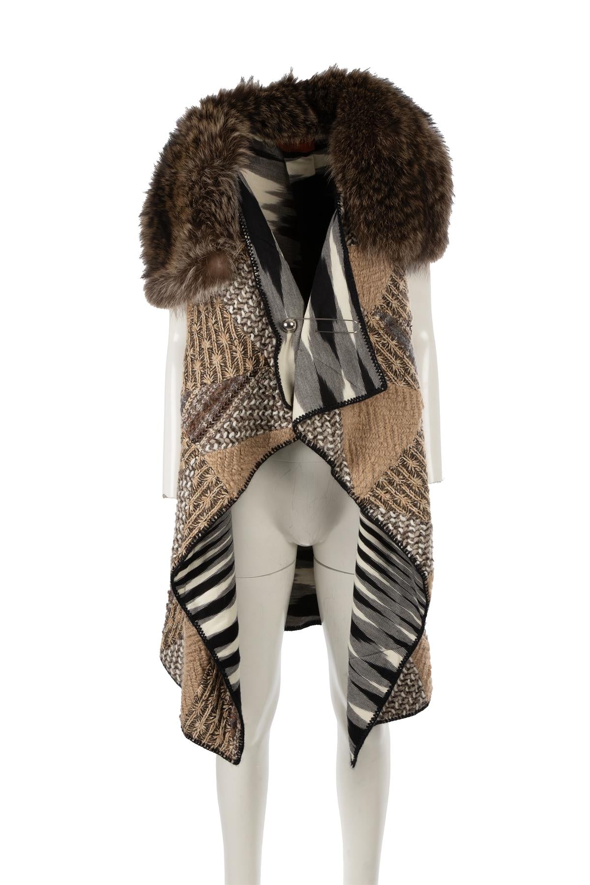 MISSONI MULTI BEAVER FUR AND WOOL GILET IT 40 UK 8