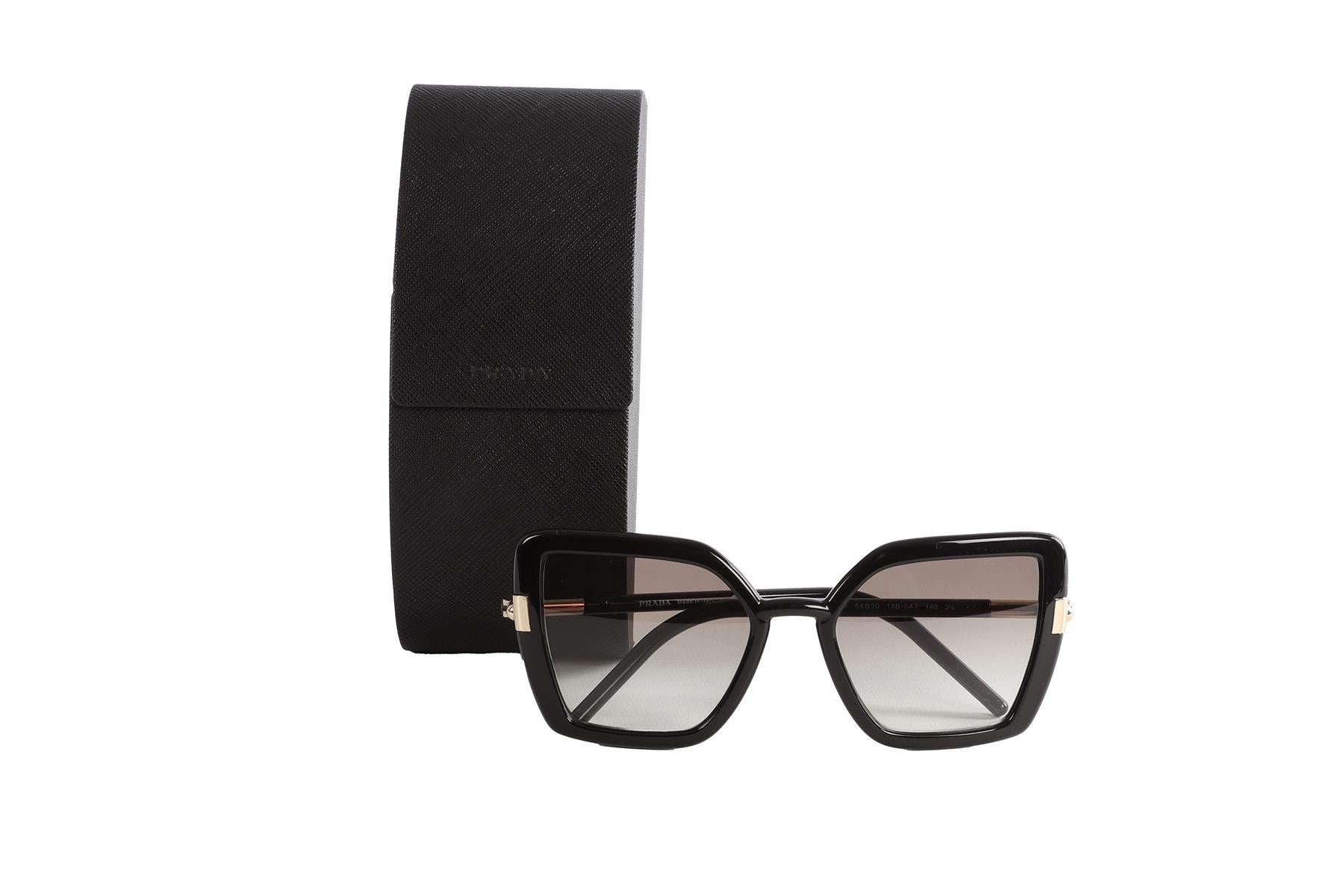 Prada Black Cat Eye Acetate Sunglasses. Black. Comes with - box. One Size.. Lens: 50 mm. Arm: 140 mm. Bridge: 20 mm.