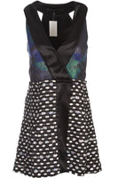 Proenza Schouler Black Cotton Mini Dress. Multicoloured. Sleeveless. V-Neck. Button fastening - Front. 51% Polyester, 28% Polyvinyl Chloride, 9% Cotton, 6% Polyamide, 3% Mohair, 3% Wool, 39% Cotton, 33% Acrylic, 12% Acetate, 8% Nylon, 2% Paper, 2% Polyamide, 2% Viscose, 100% Silk. US 2 (UK 6, FR 34, IT 38). Bust: 30 in. Waist: 28 in. Hips: 36 in. Length: 30 in.