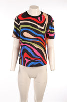 Pucci Multi Cotton T-Shirt. Multicoloured. Short Sleeve. Crewneck. Pull on. 100% Cotton. Medium (UK 10, US 6, FR 38, IT 42). Bust: 35 in. Waist: 35 in. Hips: 37.5 in. Length: 23 in.