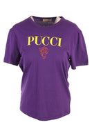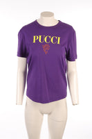 Pucci Purple Cotton T-Shirt. Purple. Short Sleeve. Crewneck. Pull on. 100% Cotton. Medium (UK 10, US 6, FR 38, IT 42). Bust: 34 in. Waist: 33.5 in. Hips: 34.5 in. Length: 25 in.