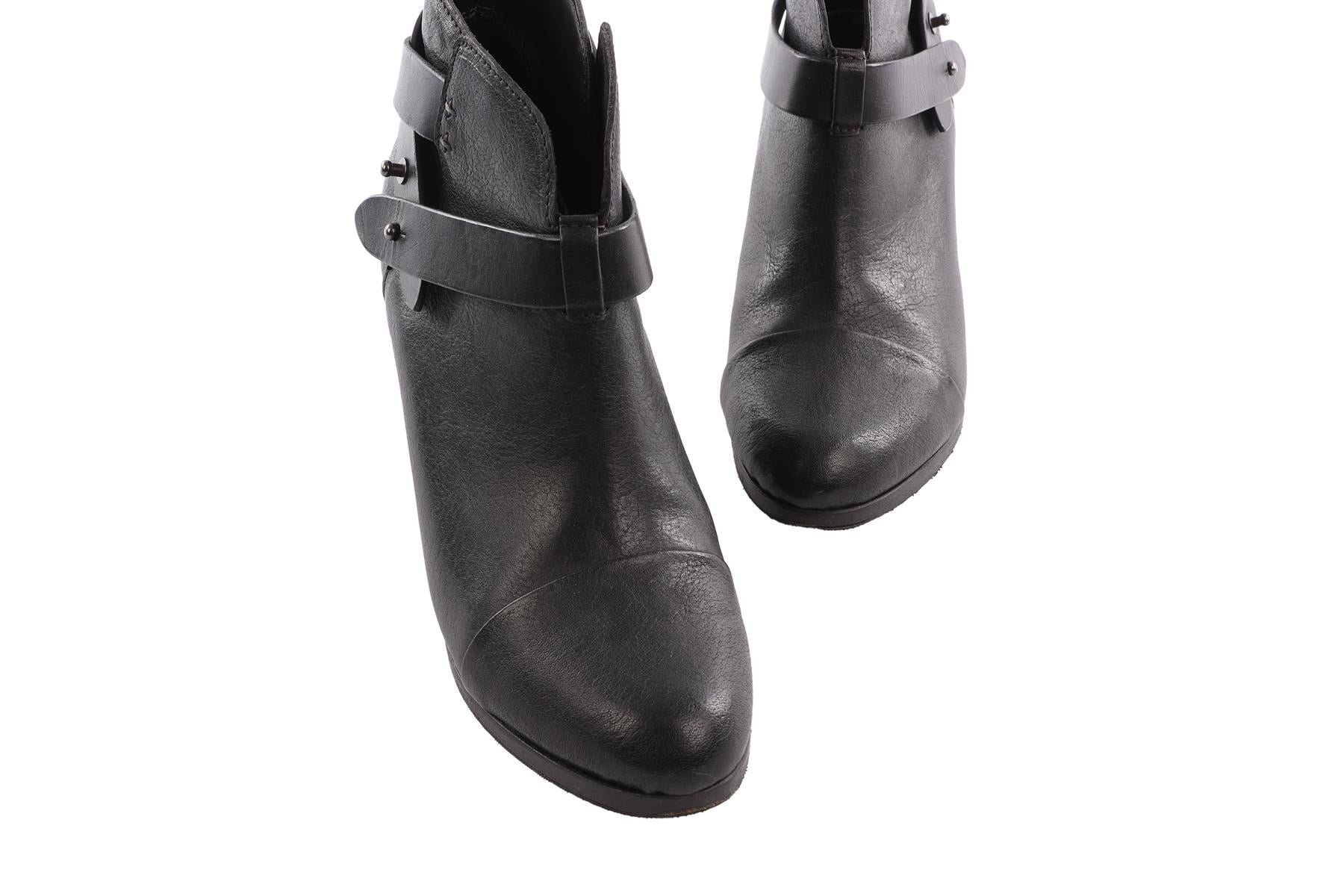RAG & BONE BLACK LEATHER ANKLE BOOTS EU 38