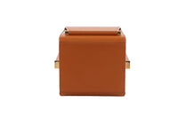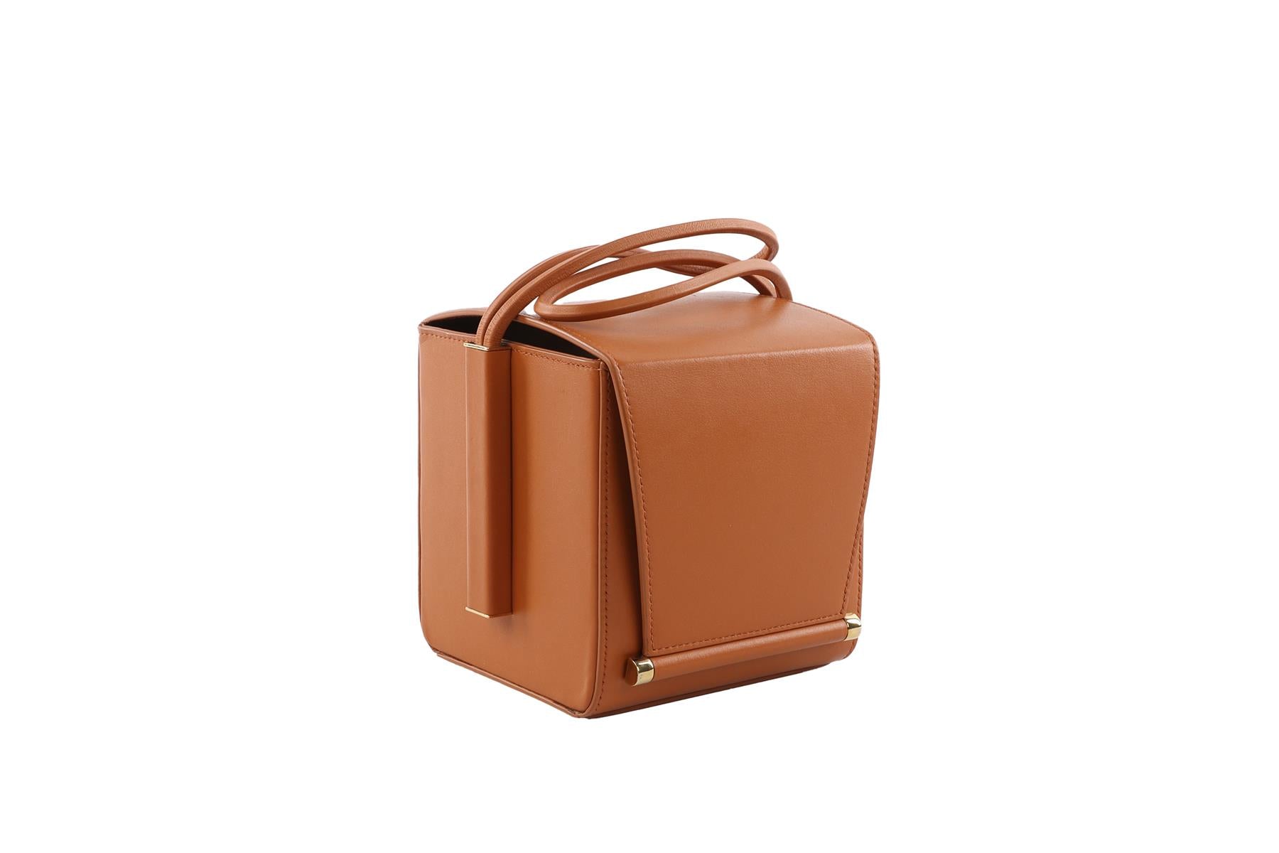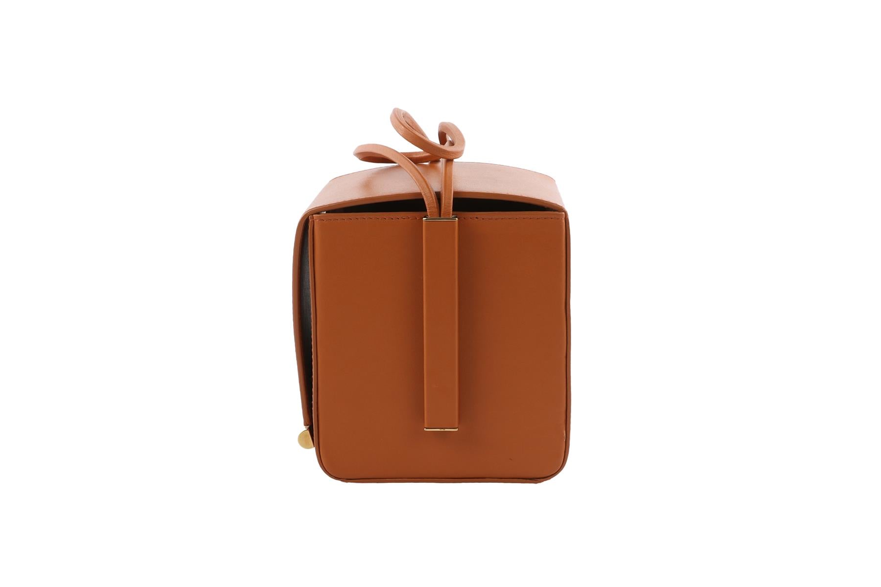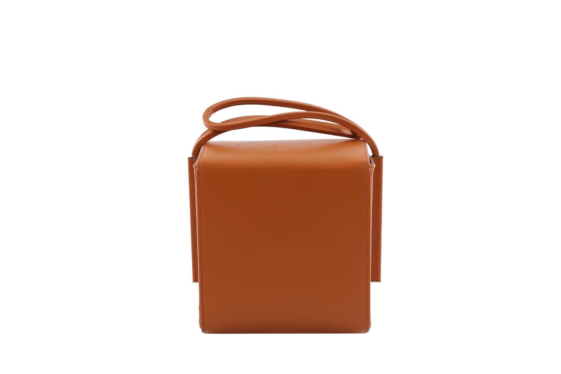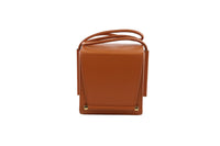 Roksanda Tan Box Leather Clutch. Tan. Magnetic fastening - Front. Does not come with - dustbag or box. One Size.. Height: 5 in. Width: 5 in. Depth: 5 in. Handle drop: 5 in.