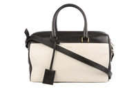 Saint Laurent Black Classic Duffle 6 Leather Tote Bag. Black and white. Zip fastening - Top. Duffle. Height: 7.75 in. Width: 12 in. Depth: 7 in. Handle drop: 6 in. Strap drop: 16 in.