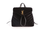 SAINT LAURENT BLACK LOU LOU SMALL VELVET BACKPACK
