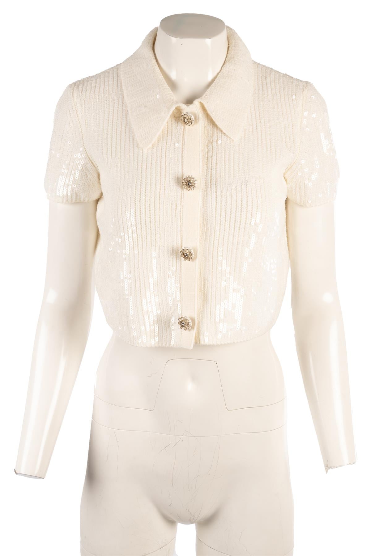 Self-Portrait White Sequin Top. White. 75% Acrylic, 18% Cotton, 7% Polyamide. Small (UK 8, US 4, FR 36, IT 40). Bust: 35 in. Waist: 34 in. Hips: 32 in. Length: 16 in.
