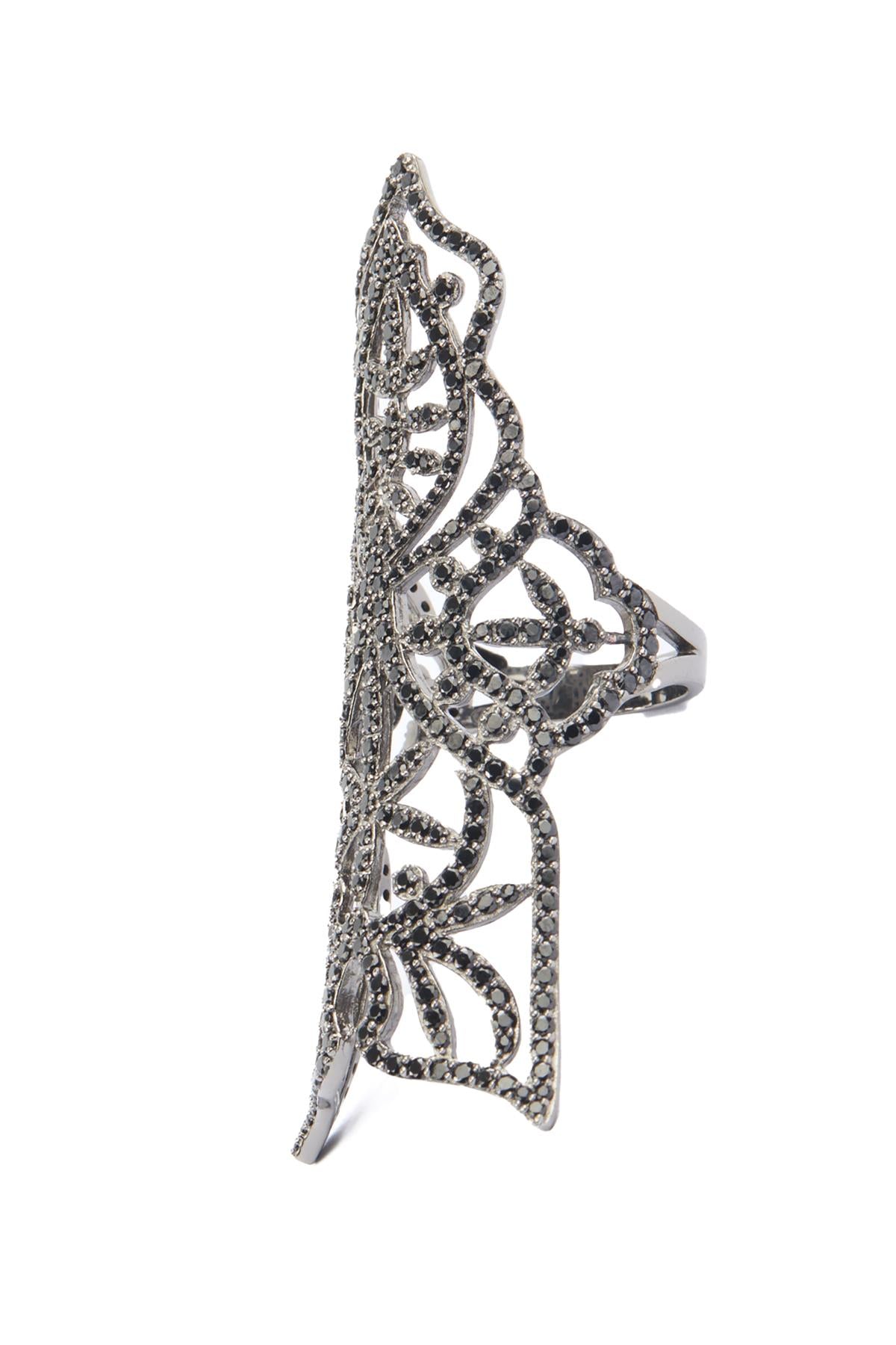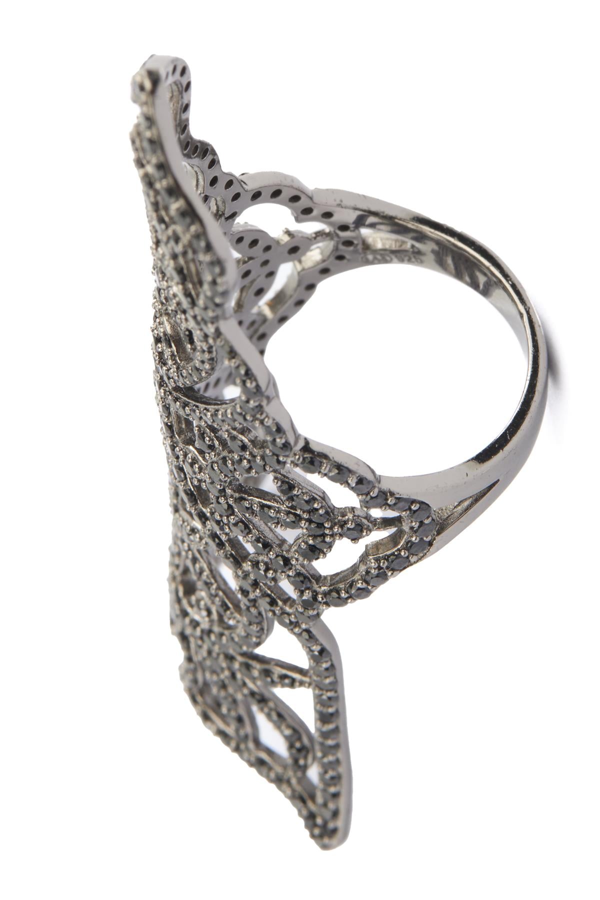 Silver Armour Ring. Silver and black. Slips on. 925 Silver. Height: 57 mm. Width: 35 mm. Depth: 20 mm.